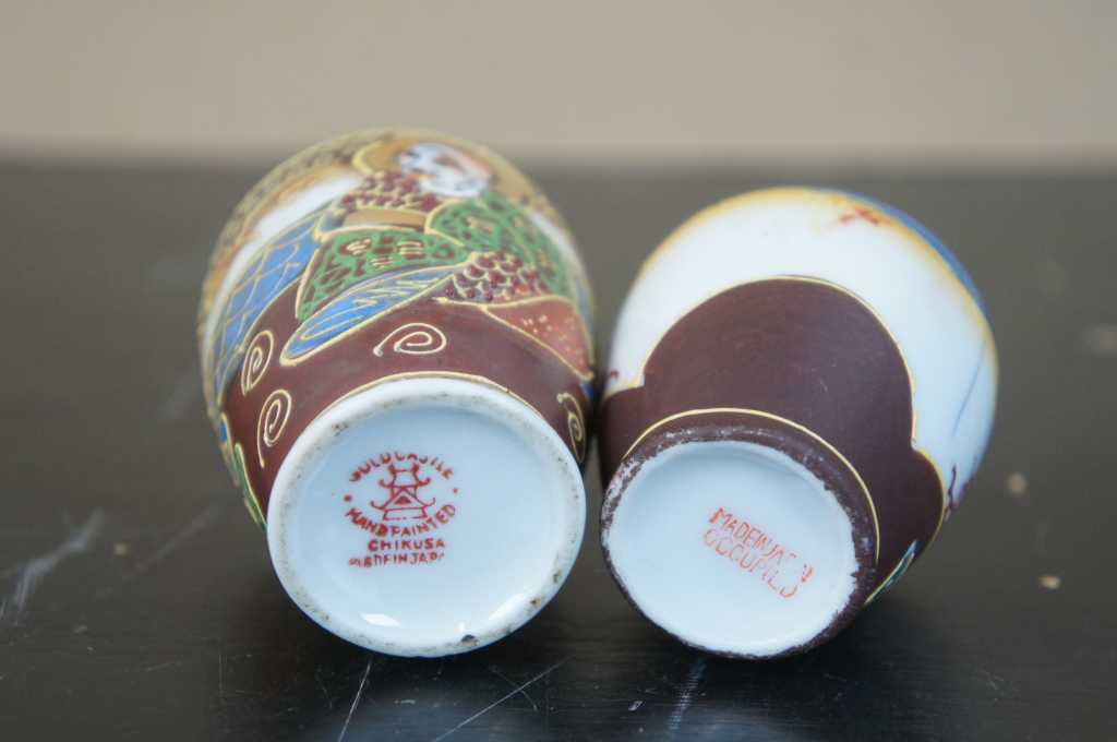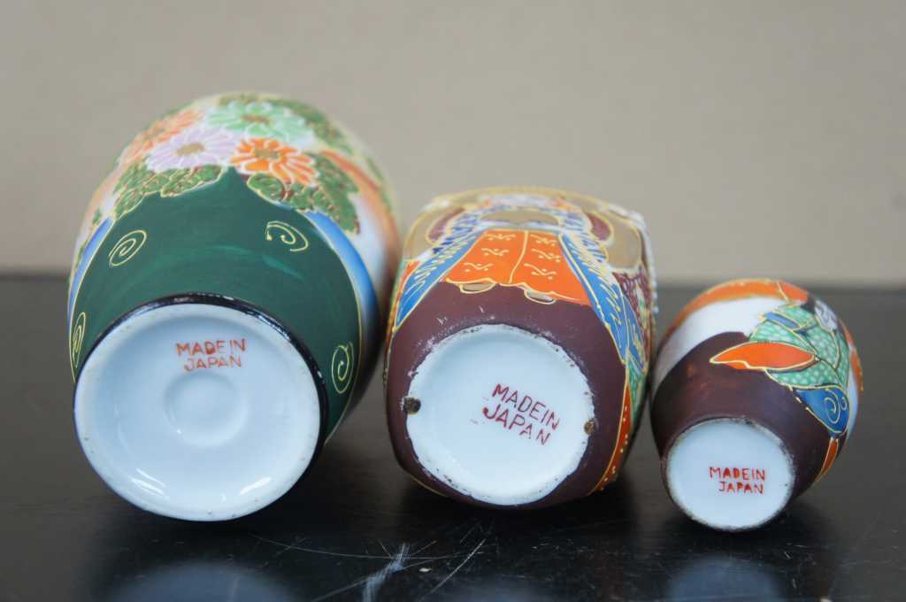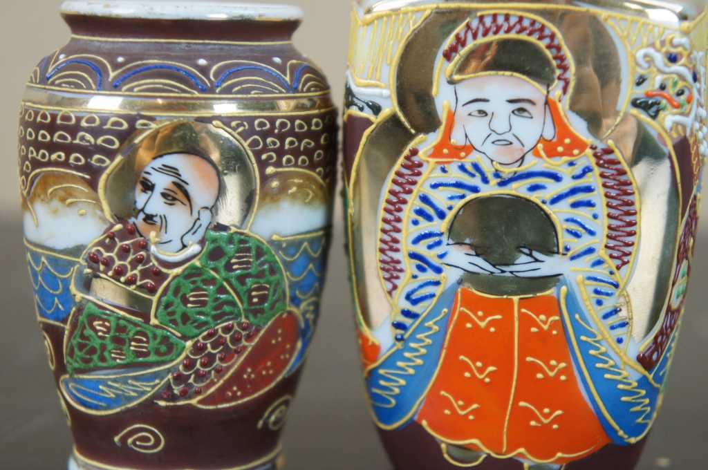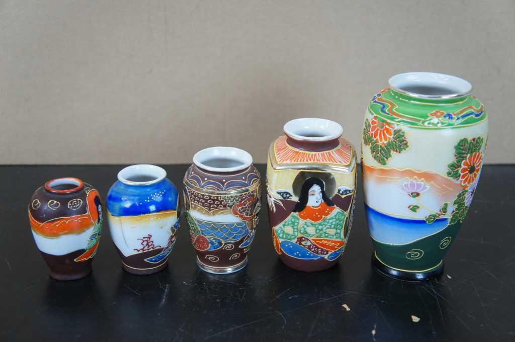 5 Japanese Satsuma Ware Mini Moriage Miniature Bud Vases God Goddesses Figures