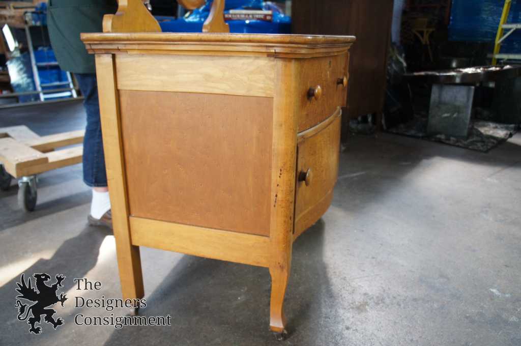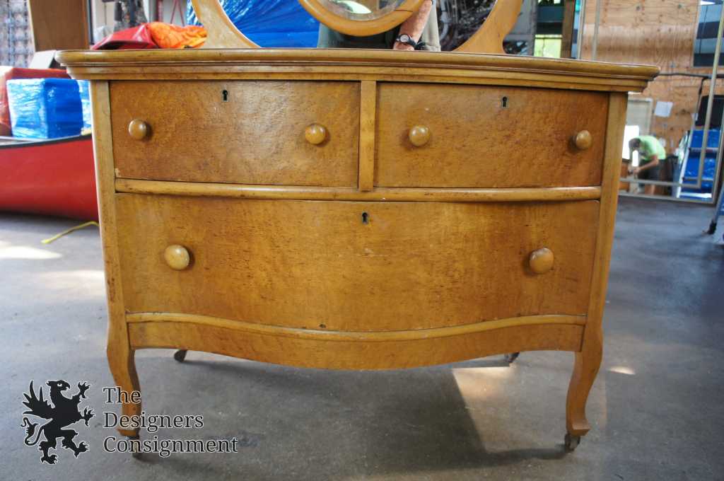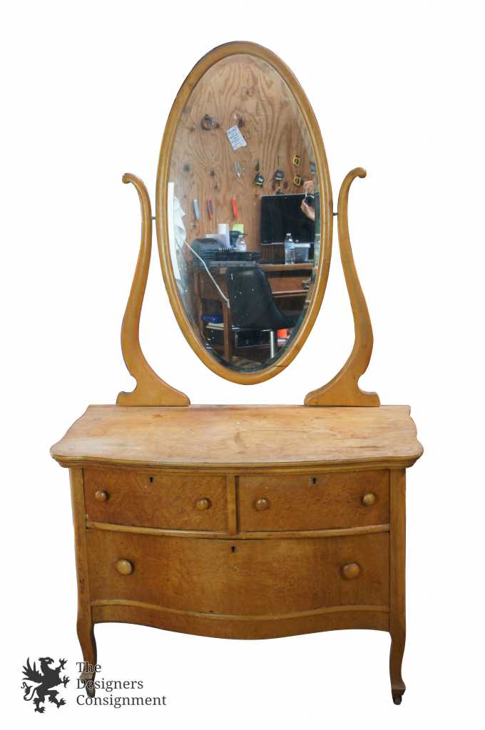 Antique Upham Mfg Co Tiger Maple Mirrored Dresser Chest of Three Drawers