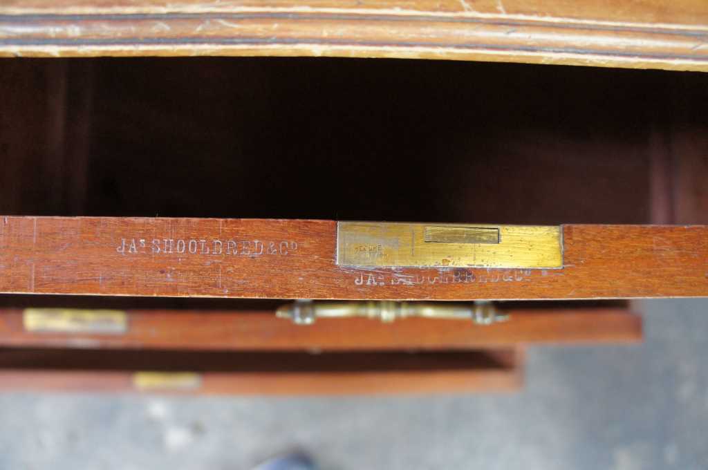 James Shoolbred & Co late Victorian Chest. Made from mahogany with grooved drawers and brass hardware.