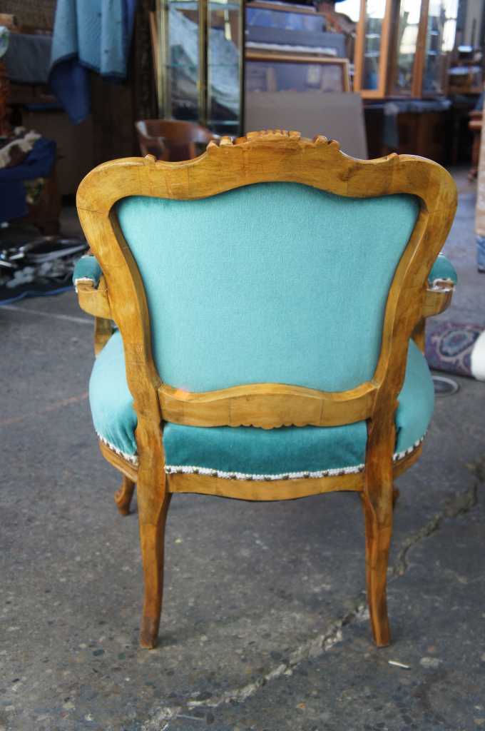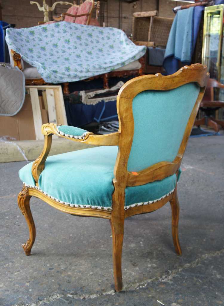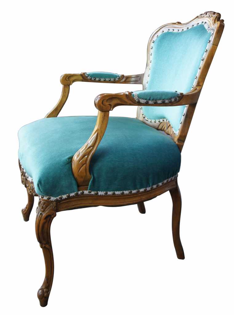 The fauteuil is a wooden seat in the form of an armchair with open sides and upholstered arms. A popular design in traditional french furniture.