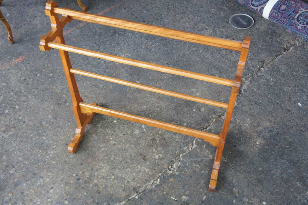Up for consideration is an american maple quilt, towel or blanket rack. Handcrafted with a budded cross shape along the sides. Includes 4 rods for hanging.