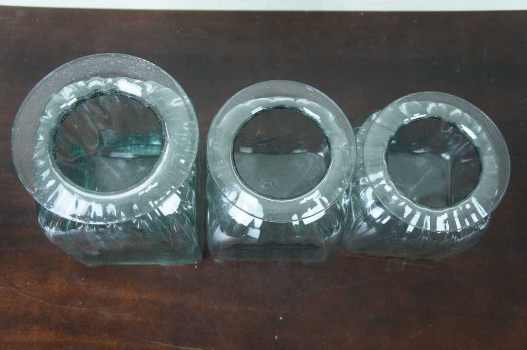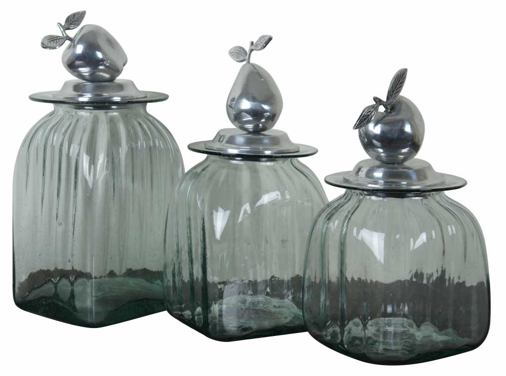 Hand blown canisters with pewter fruit lids. Great for display and use around your home.