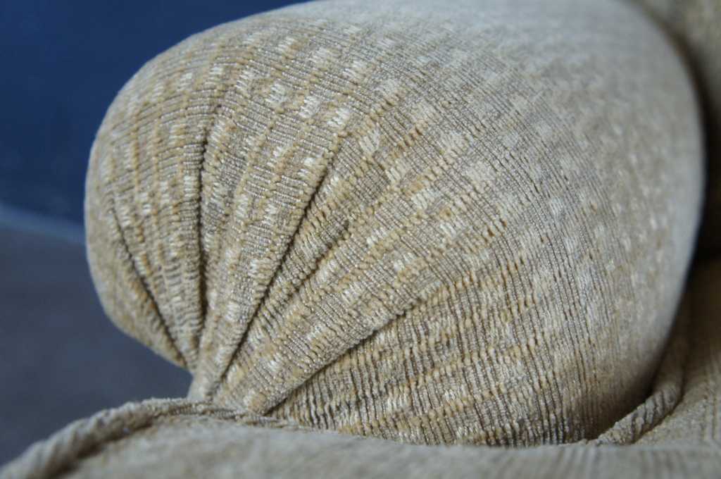 Traditional Baker Club Chair. Beige upholstered with rolled arms cushioned seat and pillowed back. A nice addition to any sitting area.