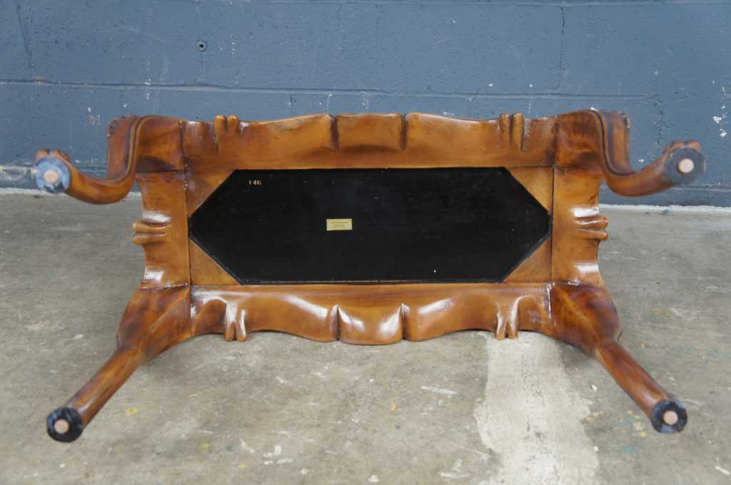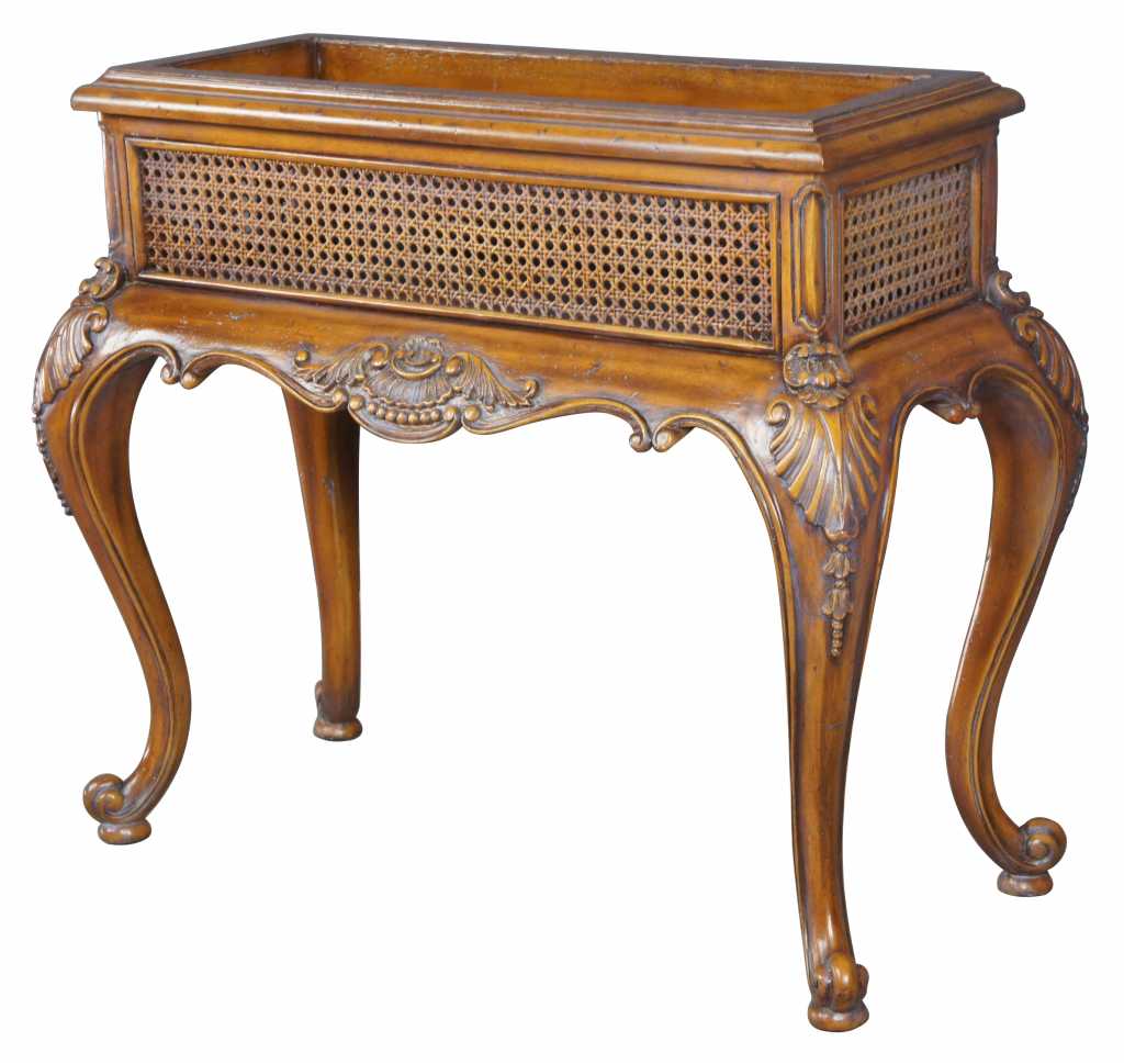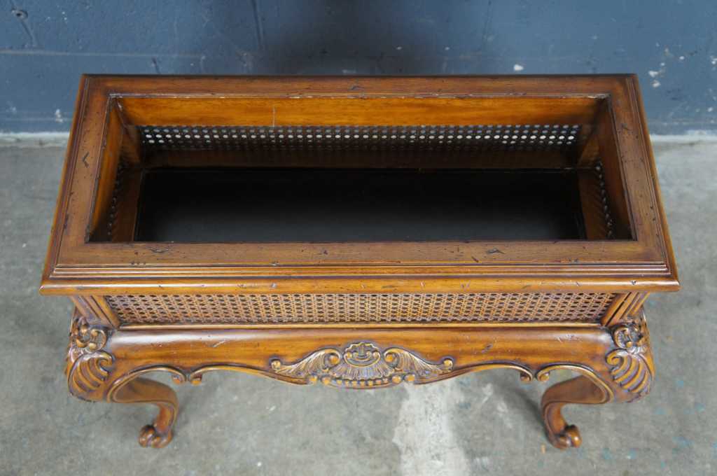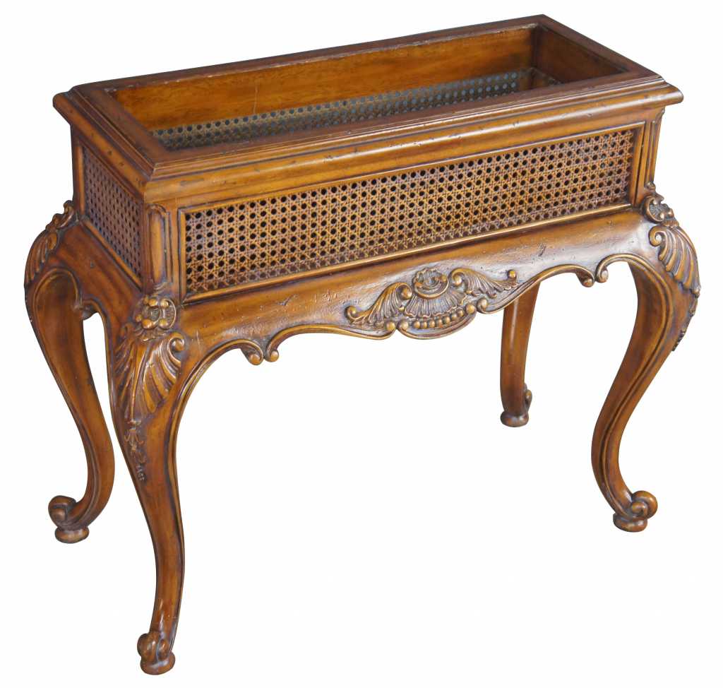 Made from mahogany with rattan siding and intricately carved cabriole legs. Great for displaying plants or a neat dry bar for liquor display.