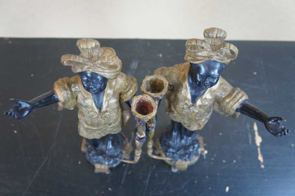 Gilt Bronze Nubian figures in Baroque attire holding torch (torchiere).