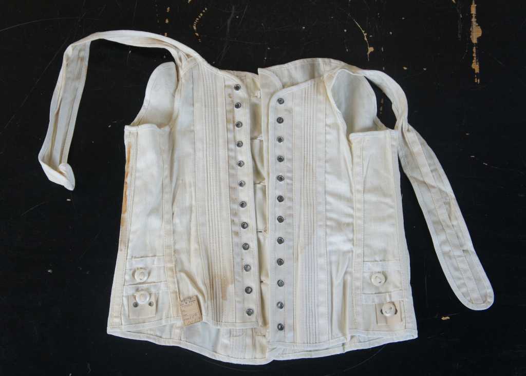 Miller Bandeau: Top of Bust – 40” / Bottom of Bust – 32” / Length – 7.25” / Strap 13” / Child’s Training Corset 1 & 2 : Bust/Hip – 24” / Back Length – 10.5” / Strap (Adjustable) - 12” / Child’s Training Corset 3: Bust/Hip – 22” / Back Length – 10.5” / Strap - 22” / La Resista Corset: Bust – 25” / Waist – 24” / Hip – 33” / Back Length – 21” / American Lady Corset: Bust – 19” / Waist – 20” / Hip – 30” / Back Length – 17” / Rengo Corset: Bust – 21” / Waist – 23” / Hip – 32” / Back Length – 16.5”