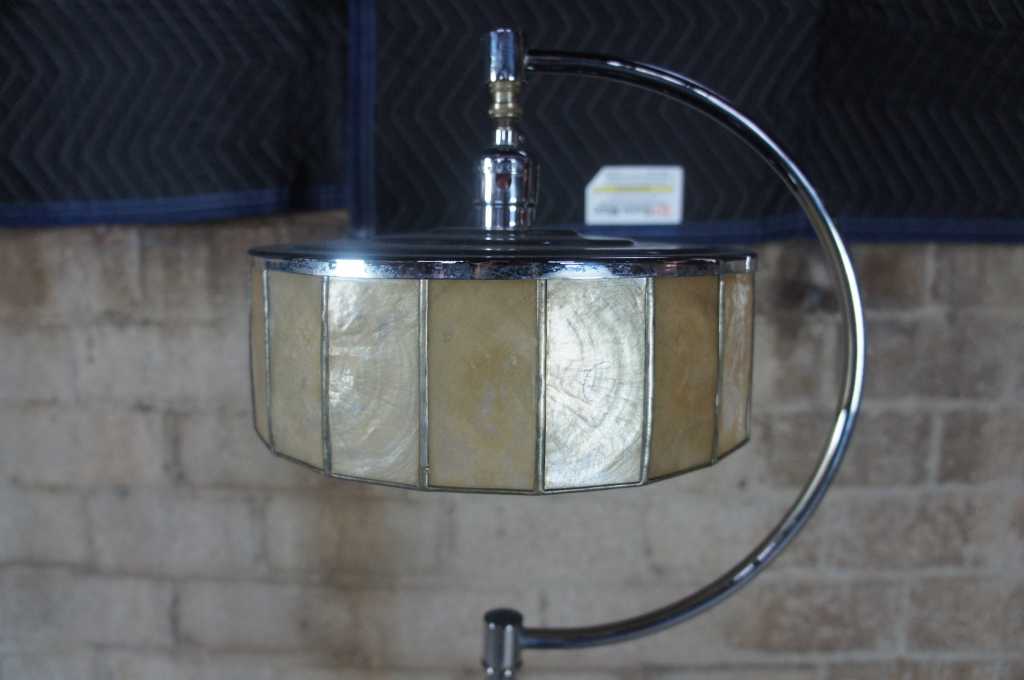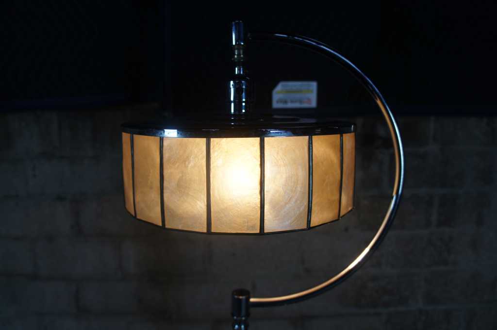 Art deco floor lamp with slag glass cylider top and table.