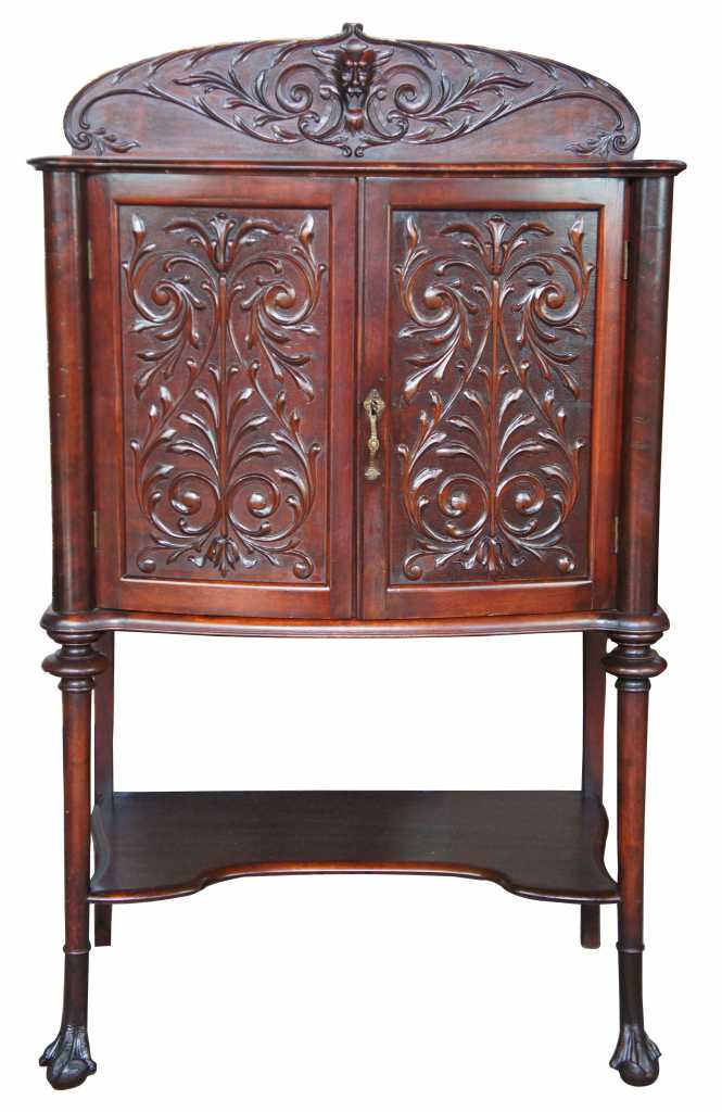 Vintage Carved Mahogany Sheet Music Cabinet Ball & Claw Foot Backsplash
