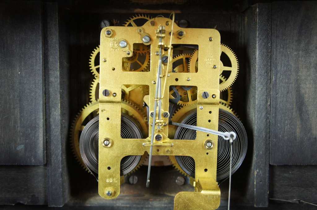Seth Thomas Adamantine Servia Imperial Mantel 8 Day Clock, Circa 1905. Features a faux green marbled front with celluloid columns and copper plated feet.