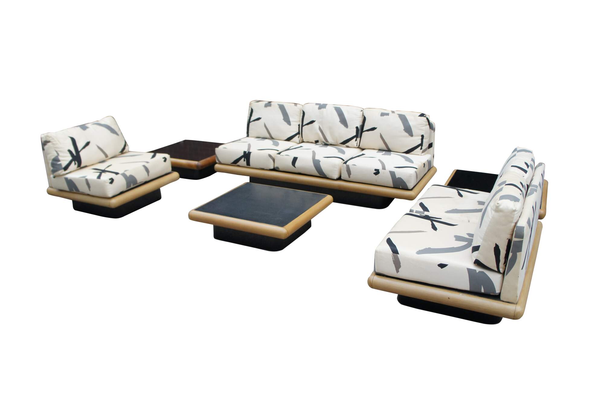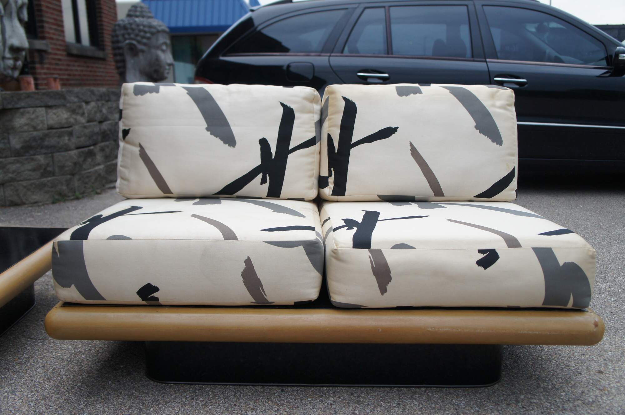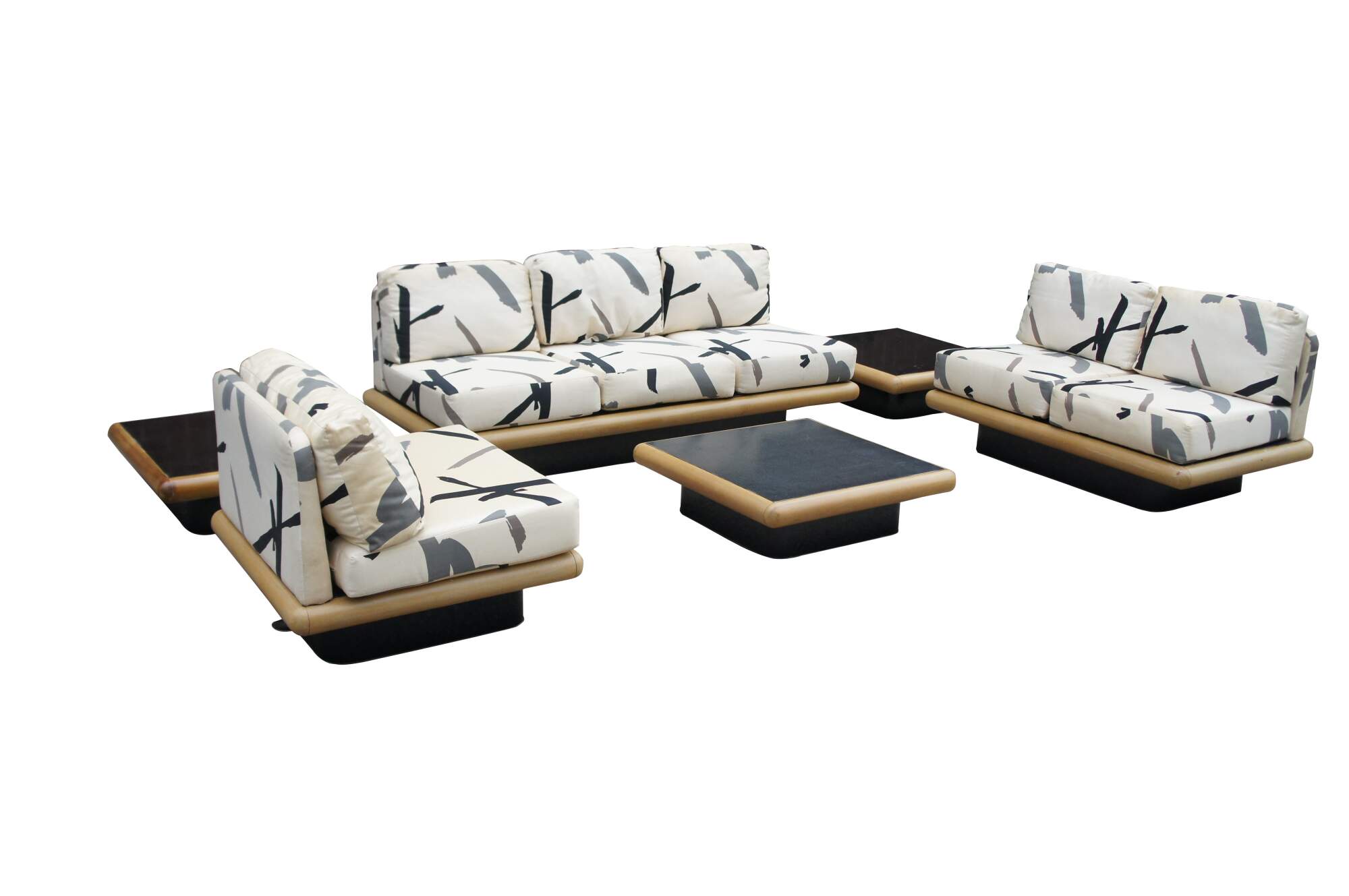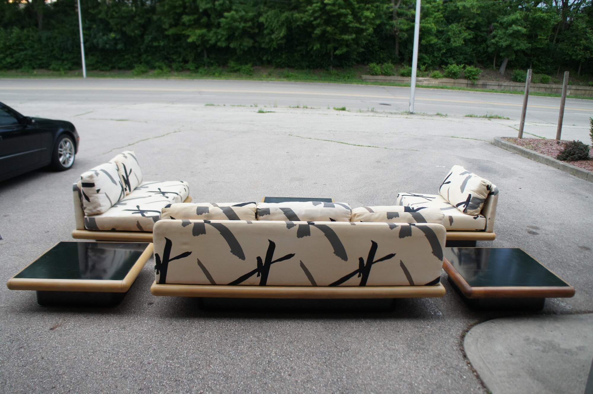 Mid century modern Milo Baughman for Thayer Coggin platform / sectional sofa set with coffee / side tables. Original fabric.