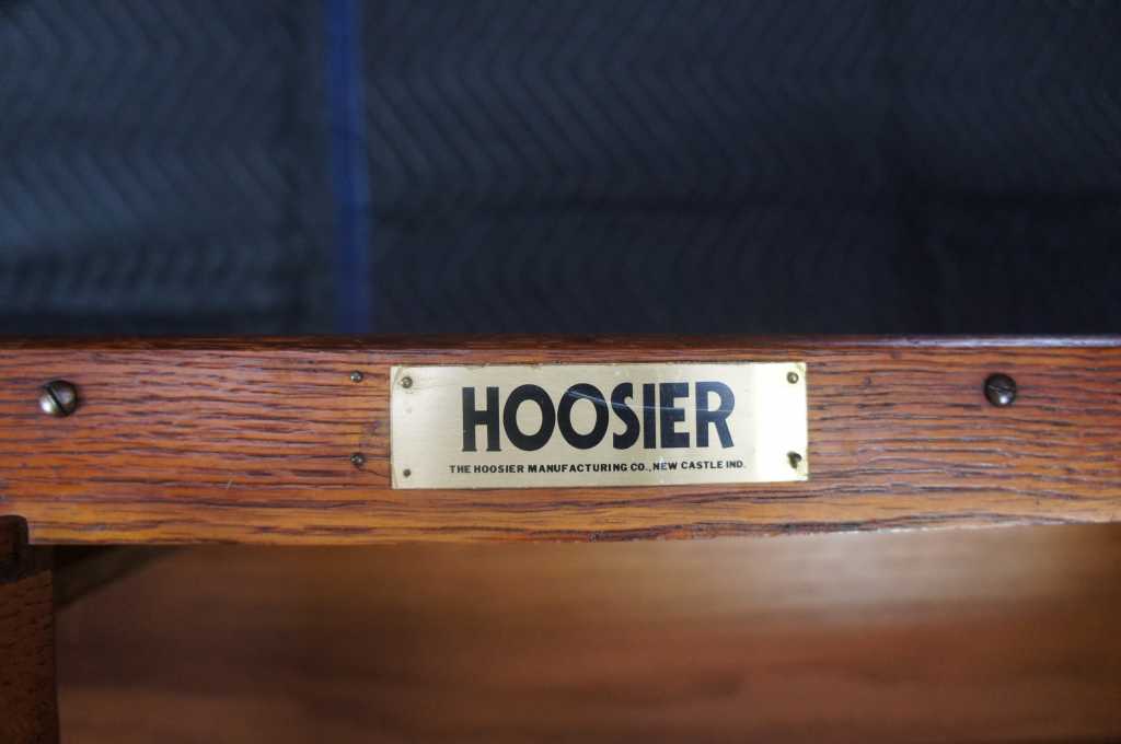 Antique Hoosier cabinet is a type of cupboard or free standing kitchen cabinet that also serves as a workstation. It was popular in the first few decades of the 20th century, since most houses did not have built in cabinetry. The Hoosier Manufacturing Company was one of the first to produce this type of cabinet, hense the name Hoosier. This beautiful cupboard features a pullout workstation over four drawers and lower cabinet portion. the hutch has a neat tambour compartment and two doors for storage. Original sifter compartment is still in tact, but without sifter. The lower right bread drawer and other pull outs all function as expected.