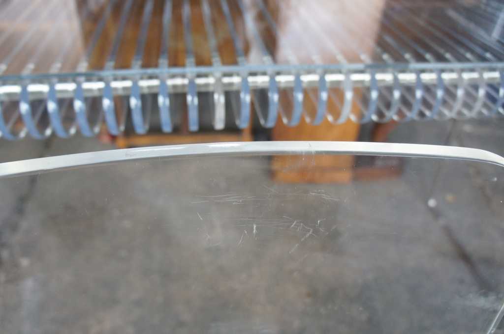 Very Good – Chip on glass top; scuffing/scratches/chipping to lucite;