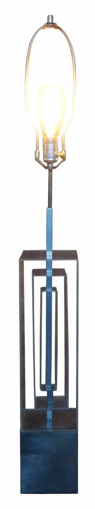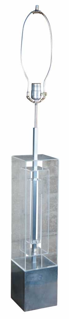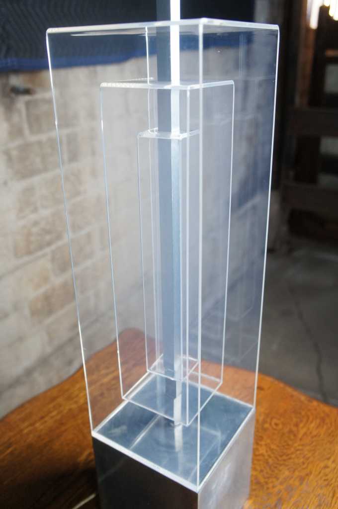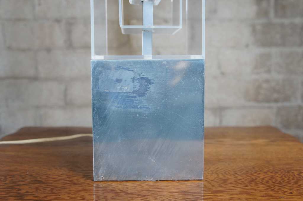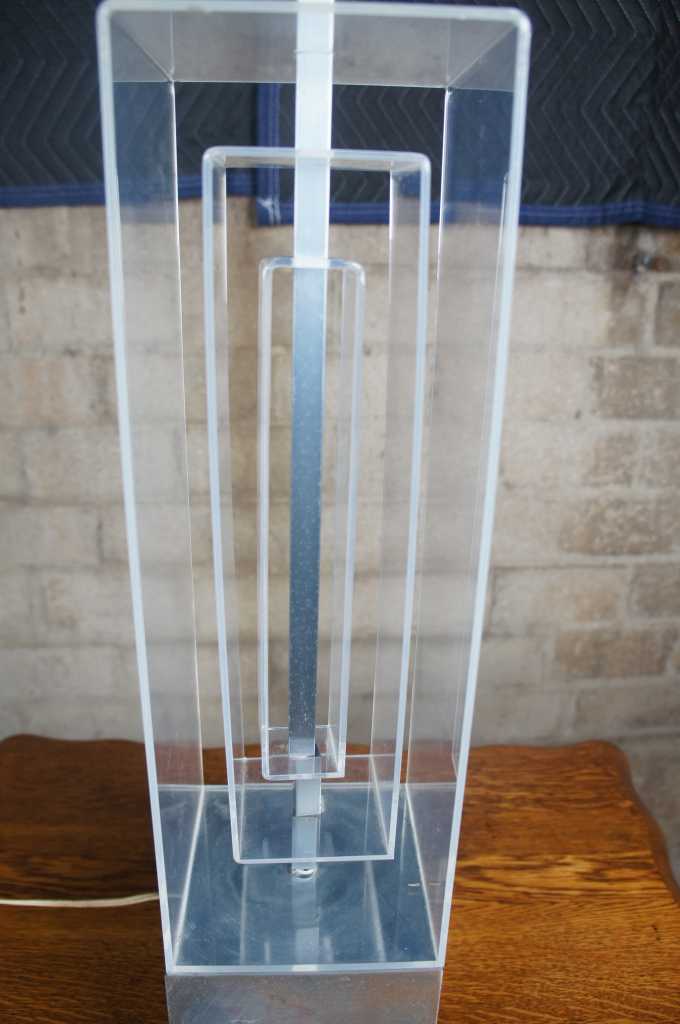 Karl Springer inspired stacked lucite geometric table lamp.
