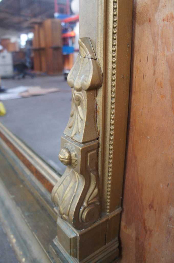 Good antique condition, paint loss, splitting, past repairs, right pilistar was reattached, left top molding slightly uneven, holes in top of frame from being mounted to a wall.  Holes can be filled and support leveled before shipping if interested.