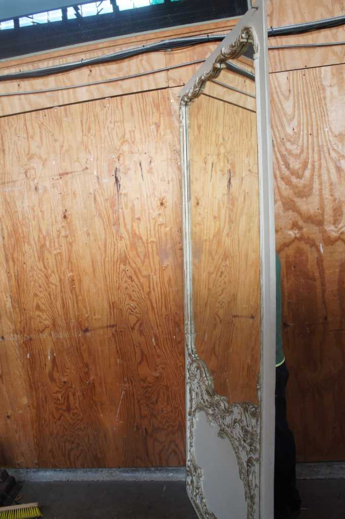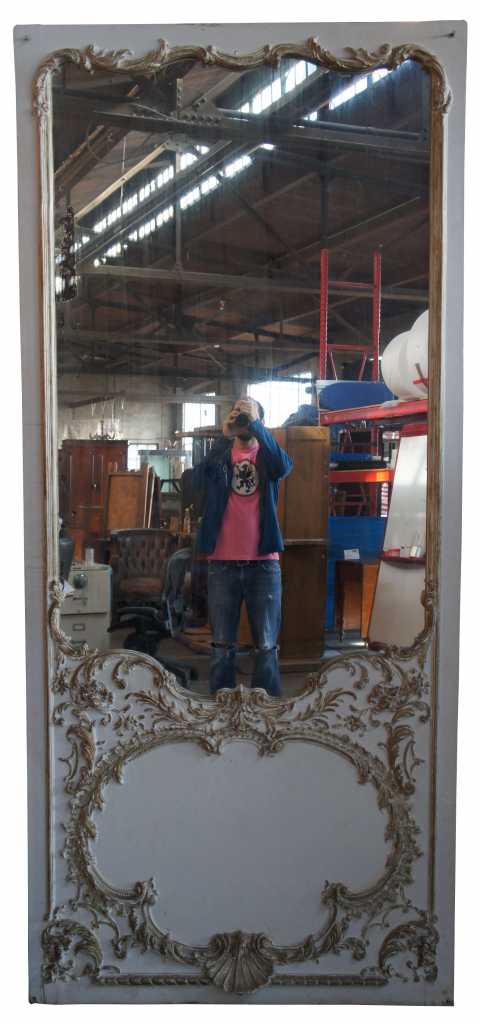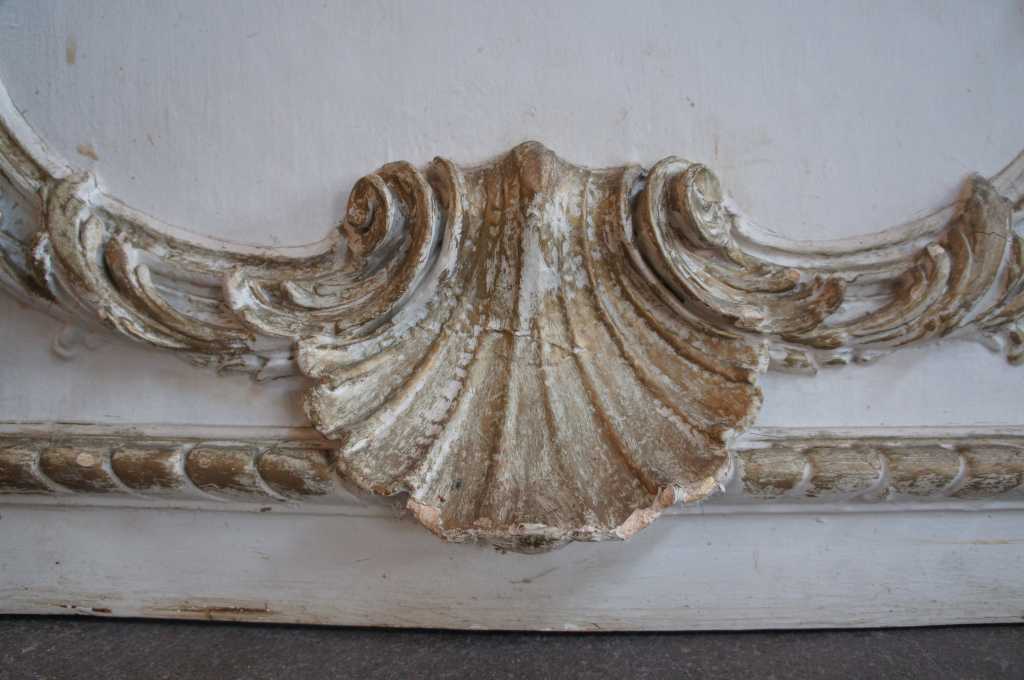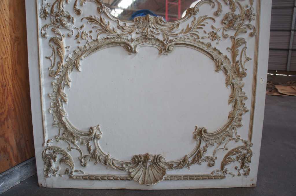 Beautiful white baroque revival wall panel or mirror. Features a shell and cartouche design. Original owner informed it came from a European palace and was used as a door.