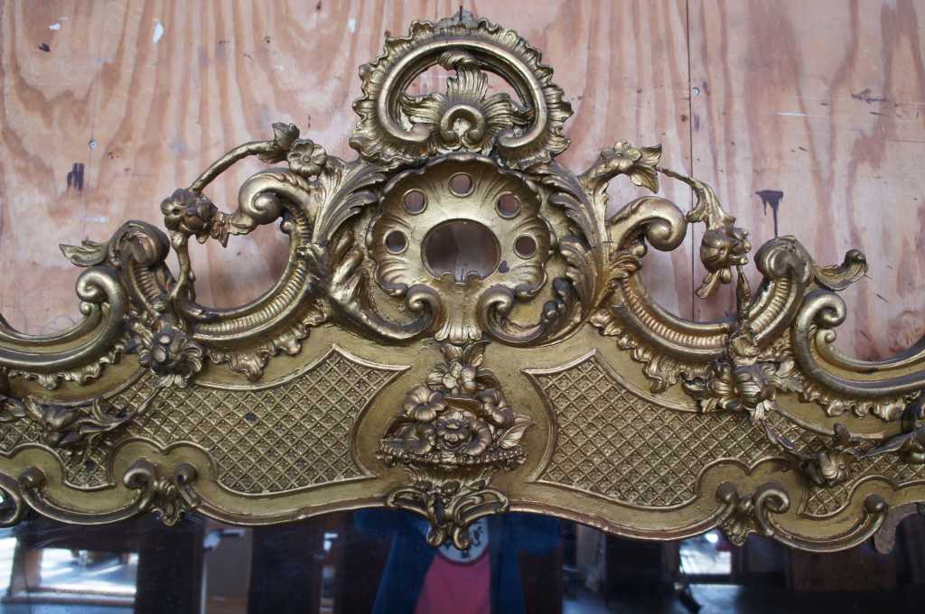 Large and richly decorated 19th century giltwood French rococo overmantel mirror.