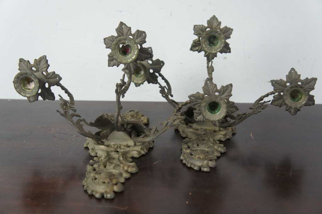 Pair of cast iron french 3 candle sconces.