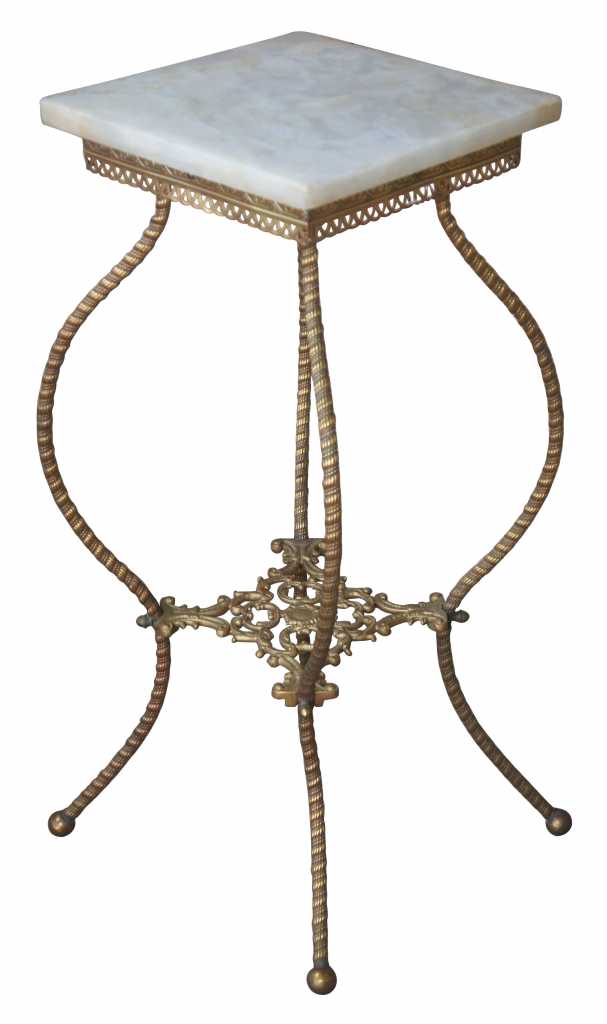 Late Victorian brass and onyx fern table or lamp stand. Features a pierced apron, swooping legs and filigree shelf.