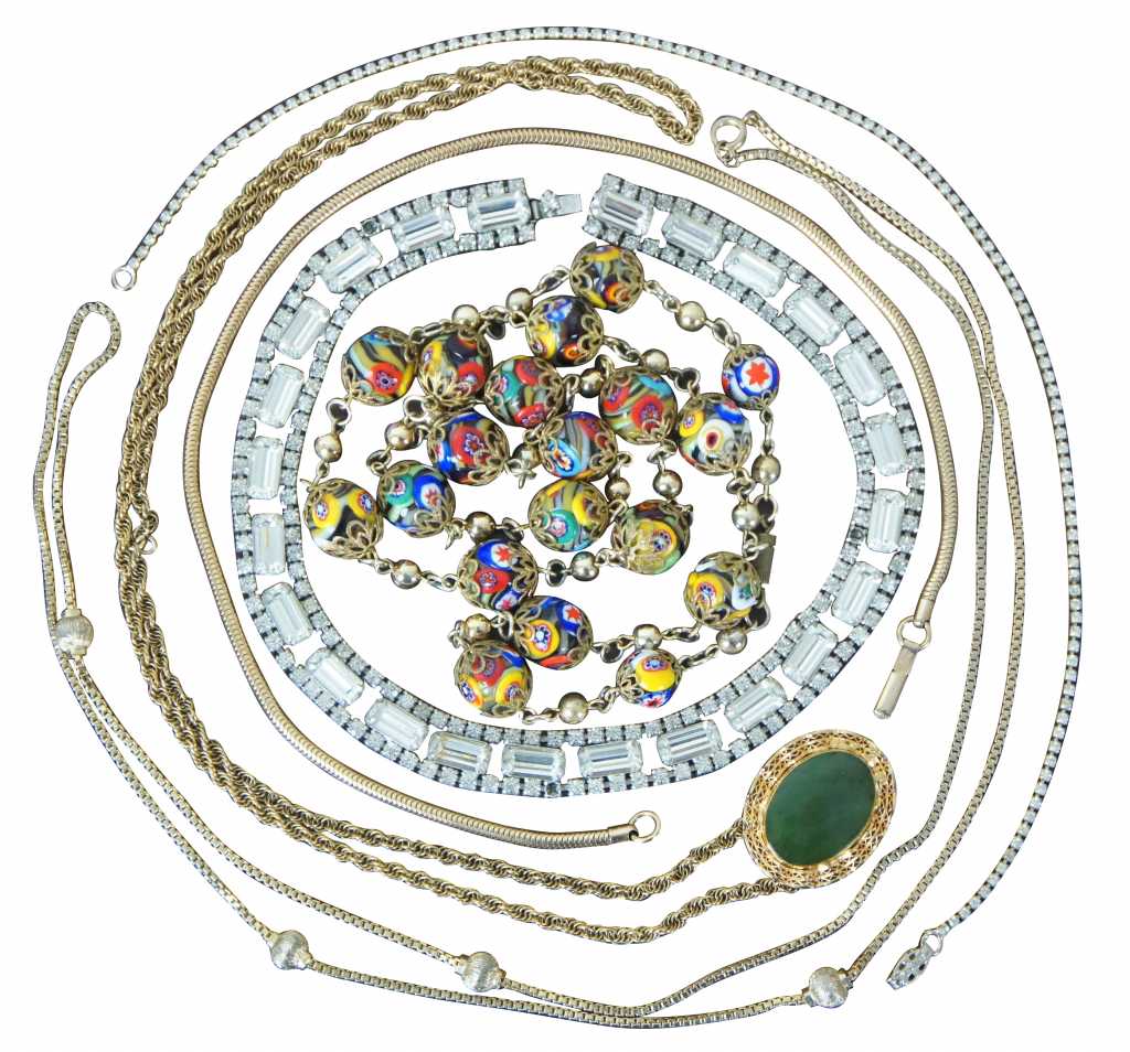 Vintage Costume Jewelry Lot; Contains 6 necklaces, 8 earrings (2 are unmatched singles), 2 Hat Pins, 5 Watches, 4 bracelets, 9 Pendants, 1 Ring, & 17 Pins