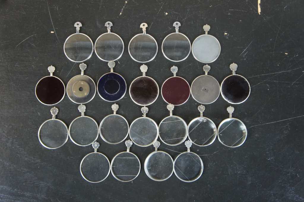 Very Good – Gently used; chips to case; crack in one lens/lens measure; one missing label on lens; two frames missing lenses; two frames/lens detached; a few minor chips/scrapes to lenses; see pictures