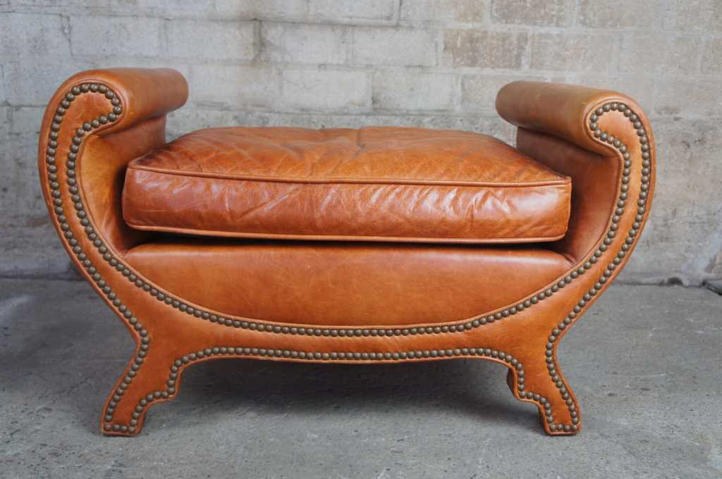 Century Furniture Duke of York Leather Studded Benches Ottoman Seat LR-38071
