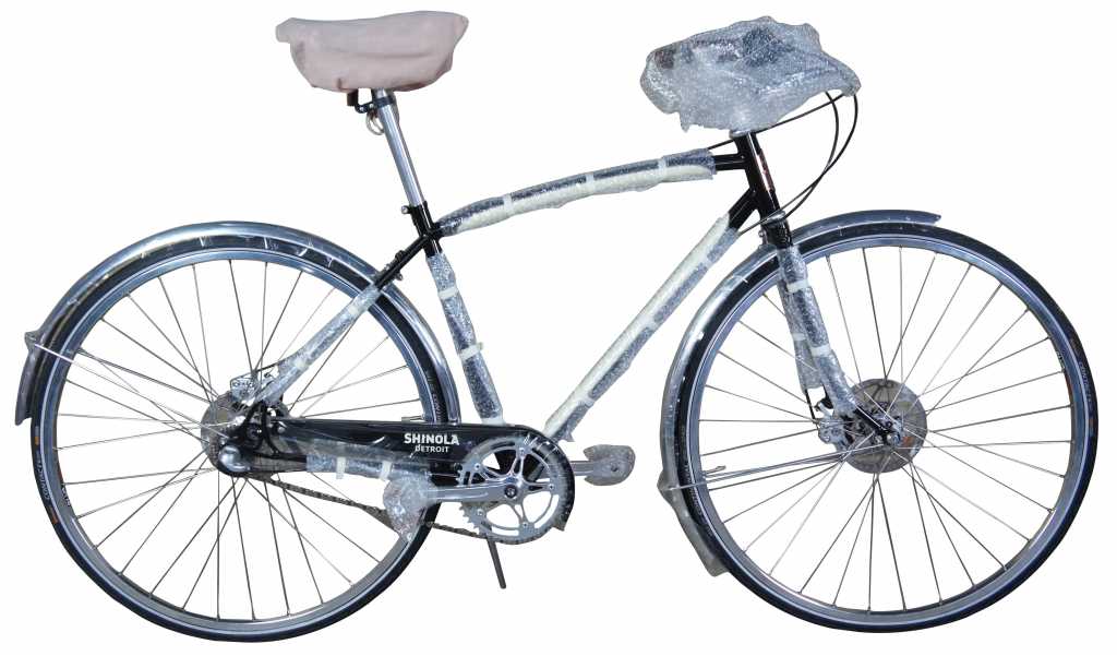 Frame Details Shinola custom laser-cut dropouts, Internal brake and gear routing, rack and fender eyelets