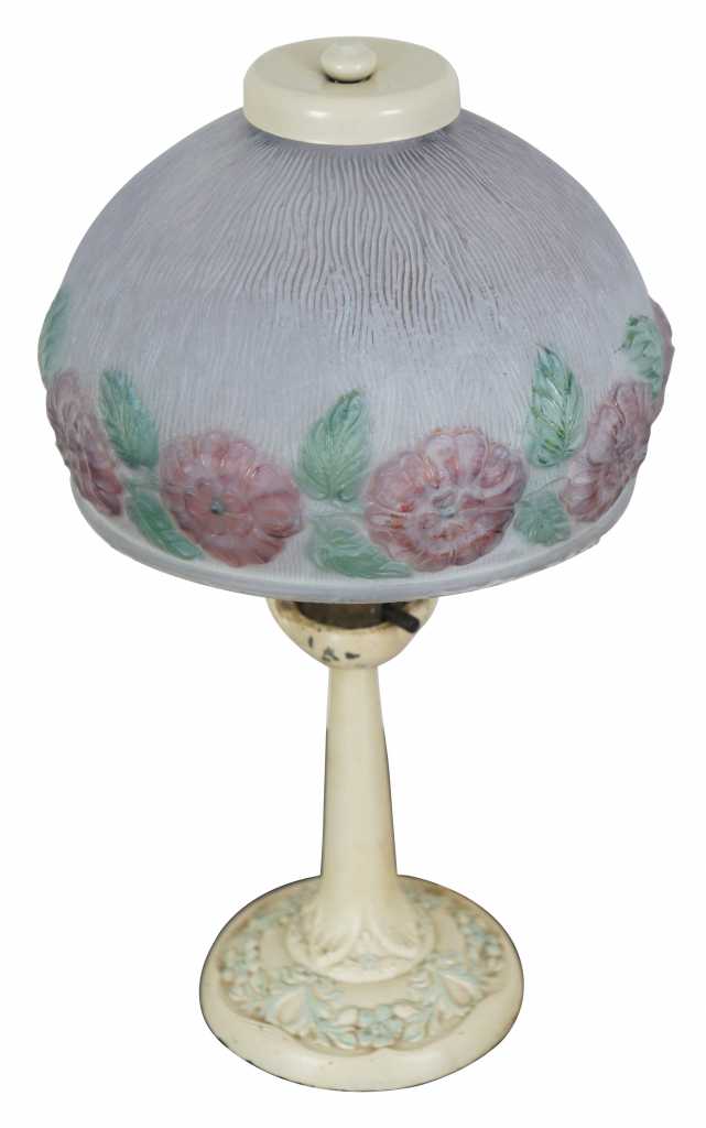 Circa 1930s Aladdin Table Lamp with floral decorated mushroom shade.