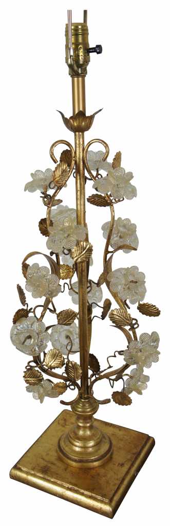 Florentine table lamp made in Italy. Features leaves and flowers.