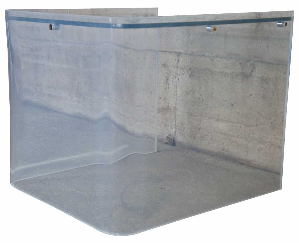 Mid century U formed acrylic or lucite side table with glass top. Glass top is supported by five chrome pins. Glass features a polished edge.