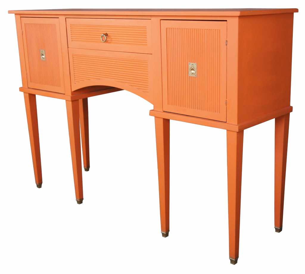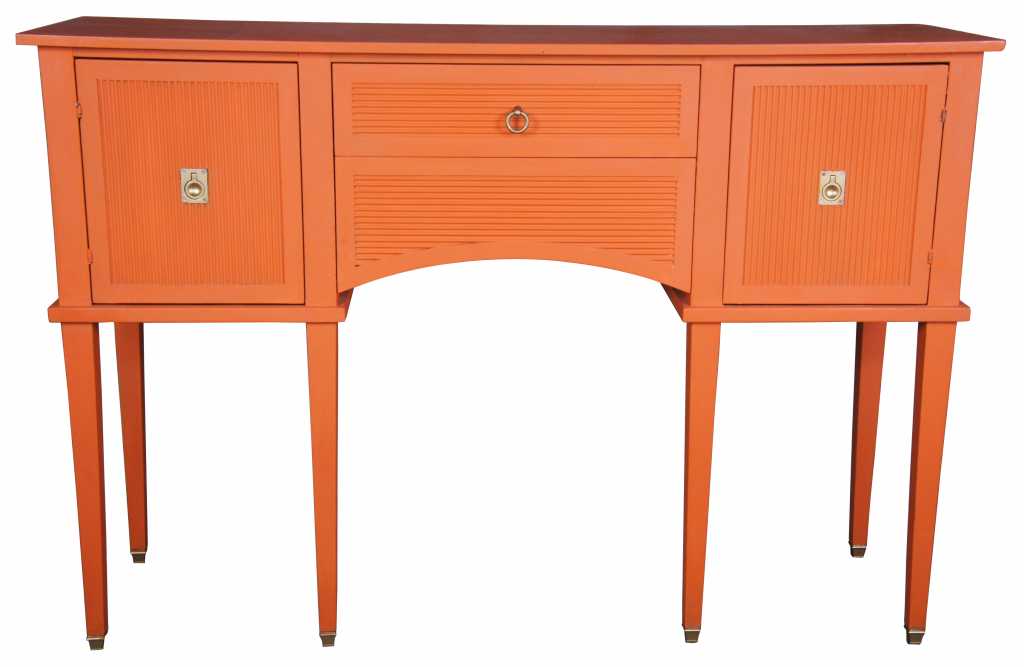 Taller than a traditional sideboard the Rossi Huntboard is perfectly scaled for gracious buffet servings. Artisian made in Italy with finely fluted door and drawer facades. Flush antique brass ring pulls and matching capped feat. Features center bottom drawer that opens from beneith. Made of tulip wood.