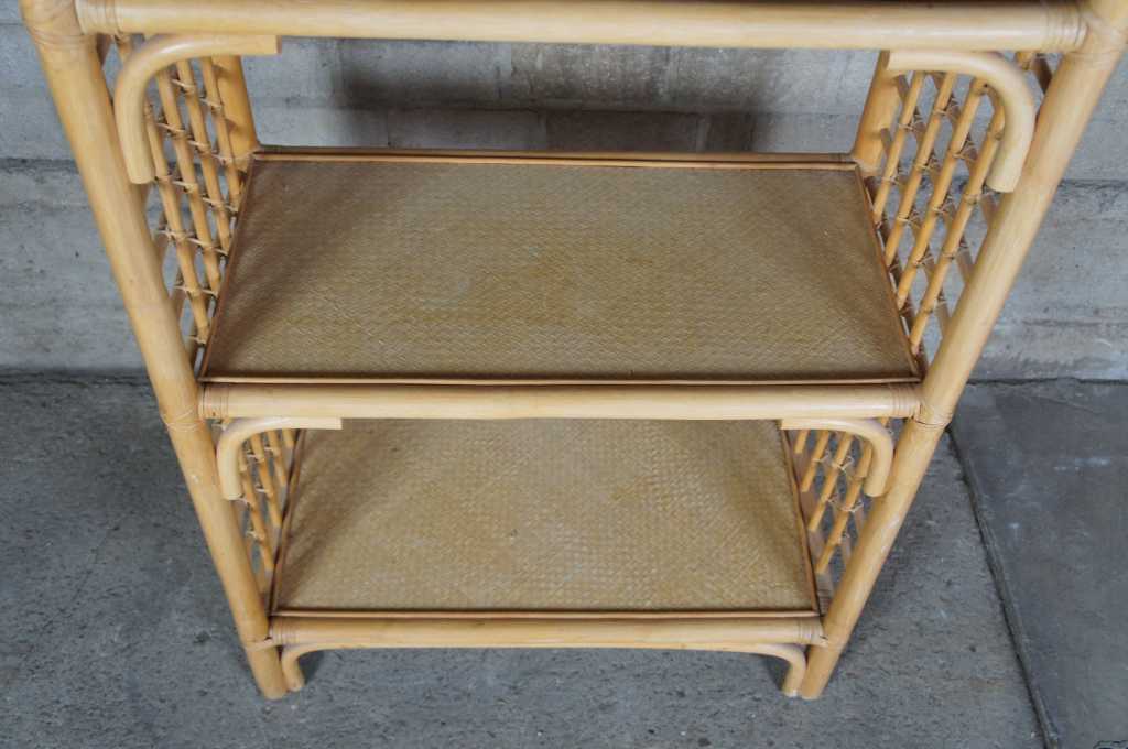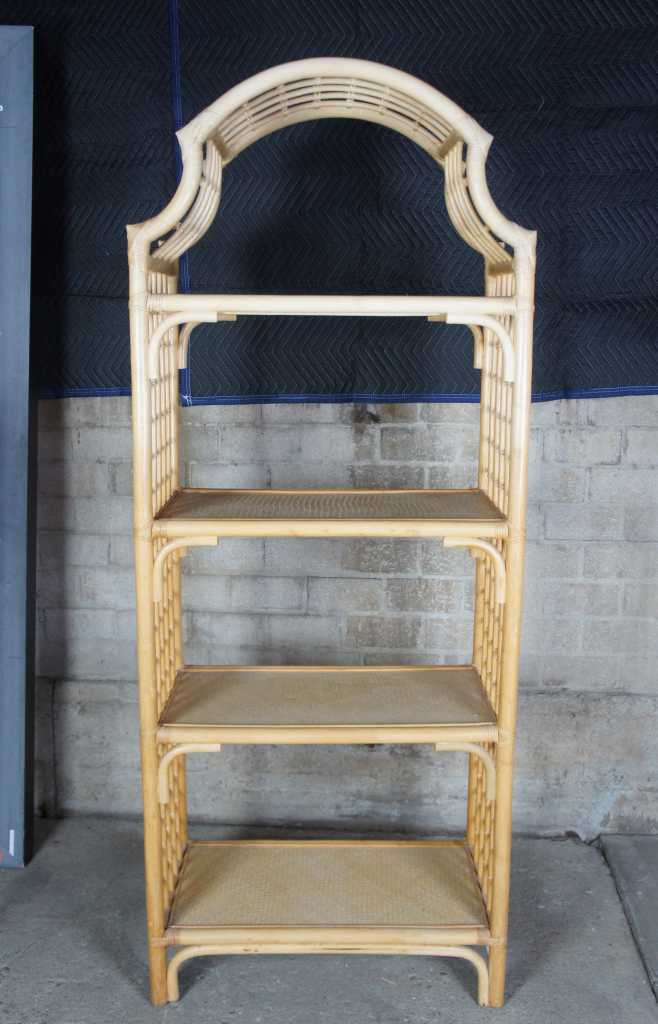 A fun bamboo bookcase, features four bamboo shelves, arched pagoda shaped top.