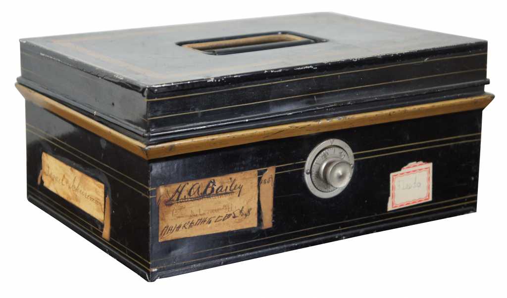 Gently Used – Light wear to box; does not latch or lock; gentle wear to documents/well preserved papers; see pictures