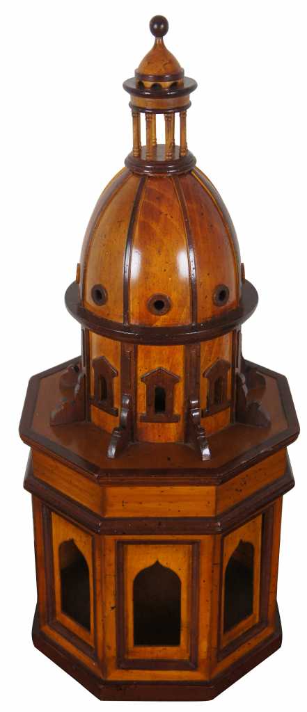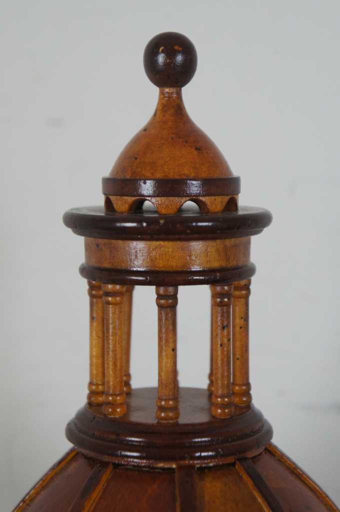The Beautifully Finished Wood Duomo Due Model Dome number AR014 by Authentic Models is a part of the Architectural Models Collection and measures 10L x 10W x 24.4H inches and weights 6.35 lbs. Architectural Models. Michelangelo had several models made of the St. Peter dome during the time he worked on it. Discovered in an attic and newly restored, these models are now a main attraction at the Vatican Museum. Architects over the centuries have made models to check details in 3D and help clients understand dimensional perspectives. Many architects of renown also collected models, not only for their exquisite workmanship but also for their value as decor in homes and especially offices. AM offers a small but no less fascinating collection of early stair models and dome buildings. Cherry and birch wood finished in subtle shades of light and dark honey. Sinuous curves and arches in beautifully finished wood add a fluid touch to private or corporate quarters.
