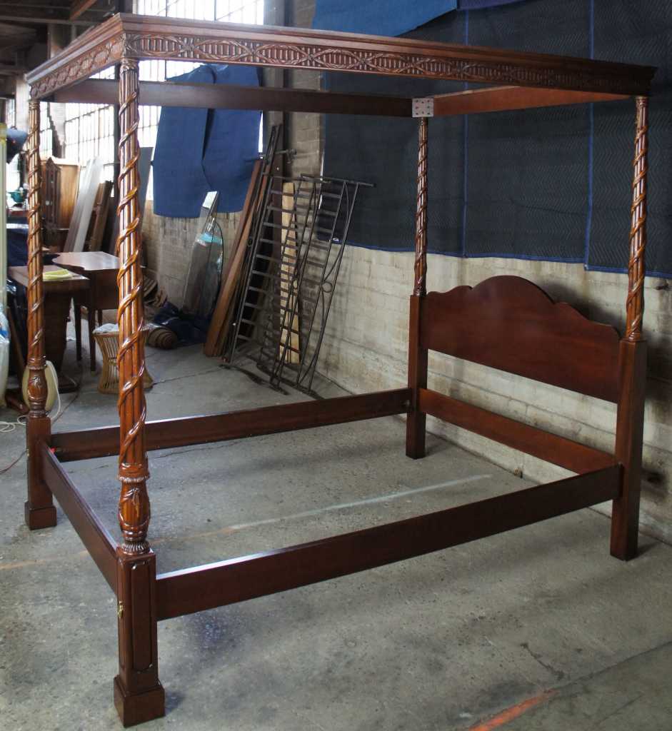 Hickory Chair company Reed & Ribbon poster bed. Made from solid mahogany with neoclassical stylings throughout. Circa 1990s, made in USA.