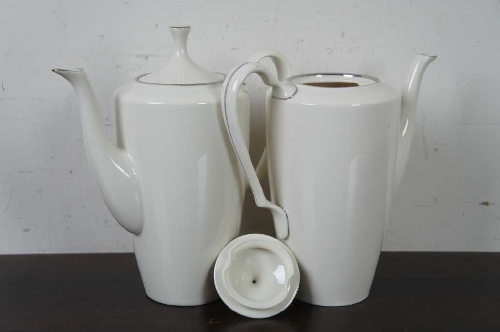 Large Round Platter - 12.75” x 0.75” / Medium Round Platter - 12.125” x 0.75” / Soup Tureen w/ Lid - 14” x 10” x 8” / Oval Platter - 13.75” x 10” x 1.125” / Serving Dish w/ Lid - 11” x 9” x 5.75” / 30 Dinner Plates - 10.75” x 0.75” / 2 Teapots - 8.75” x 4.5” x 9.5” / 24 Salad Plates - 8.25” x 0.5” / 24 Bread Plates - 6.5” x 0.5” / 3 Coffee Cups - 3.375” x 2.75” / 3 Creamers - 4.75” x 3.25” x 3.5” / Gravy Boat - 8.5” x 6” x 4.25” / 16 Saucers - 5.75” x 0.75” / 4 Sugar Bowls w/ 3 Lids - 6” x 4” x 4.5” / 4 Bone Dishes - 5” x 2.25” x 1” / 15 Teacups - 4.25” x 2” (Diameter x Height/Width x Depth x Height)