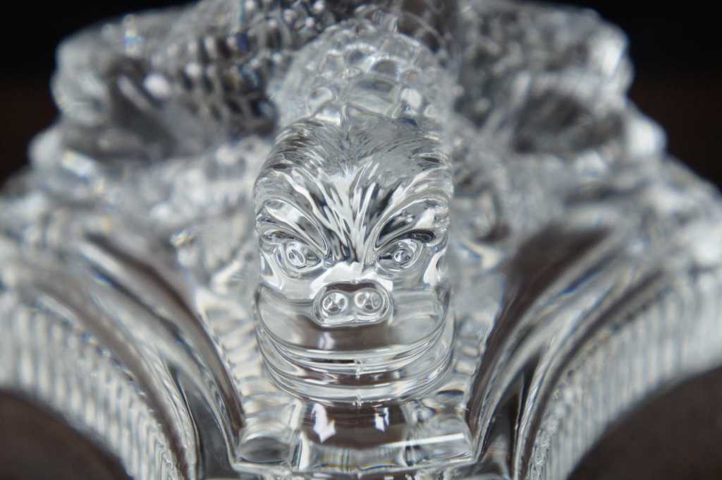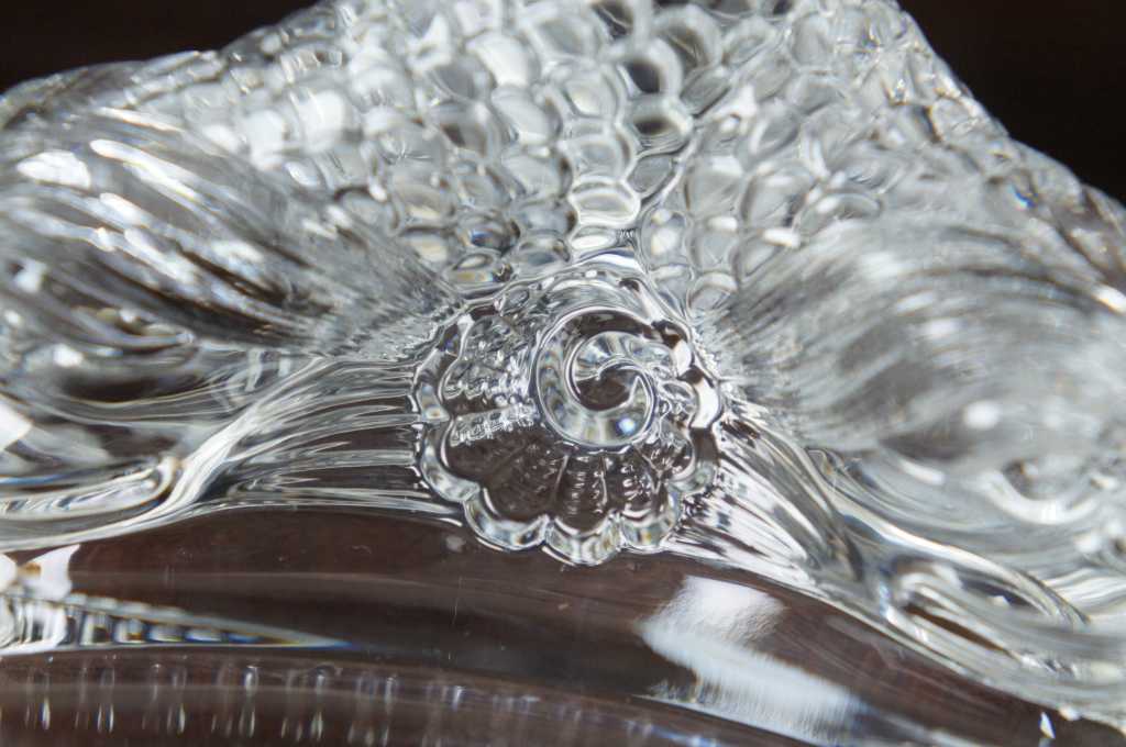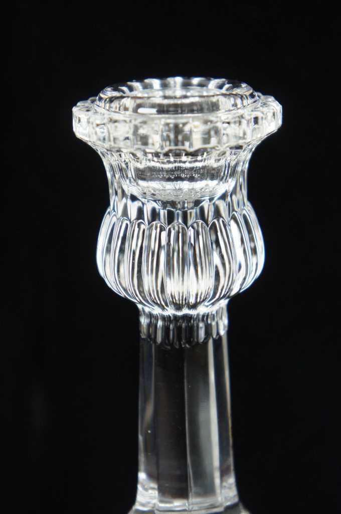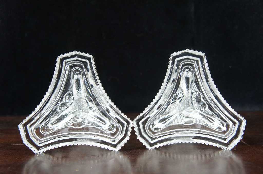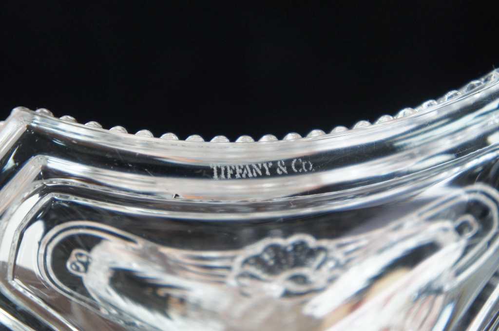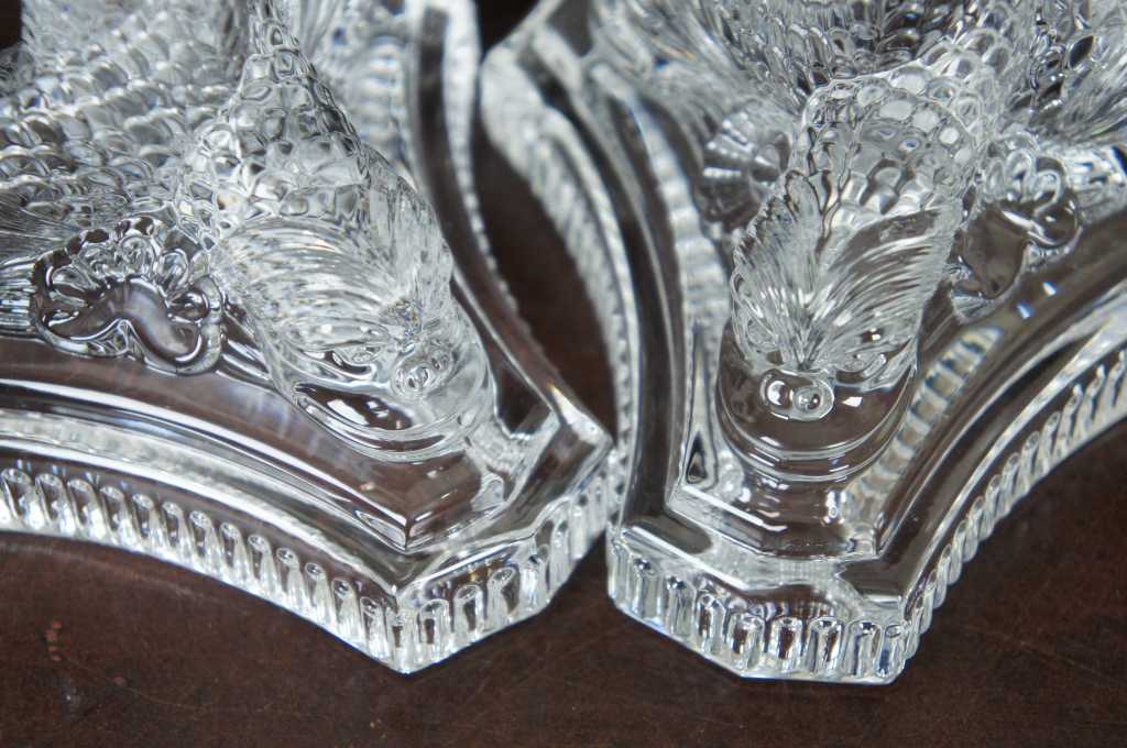 Tiffany crystal candlesticks, features a tripod base with dolphins.