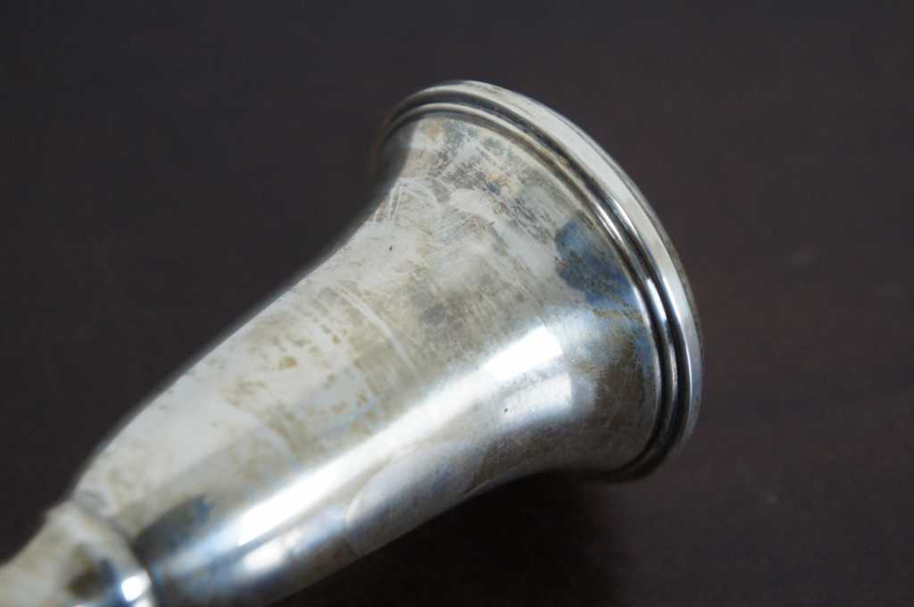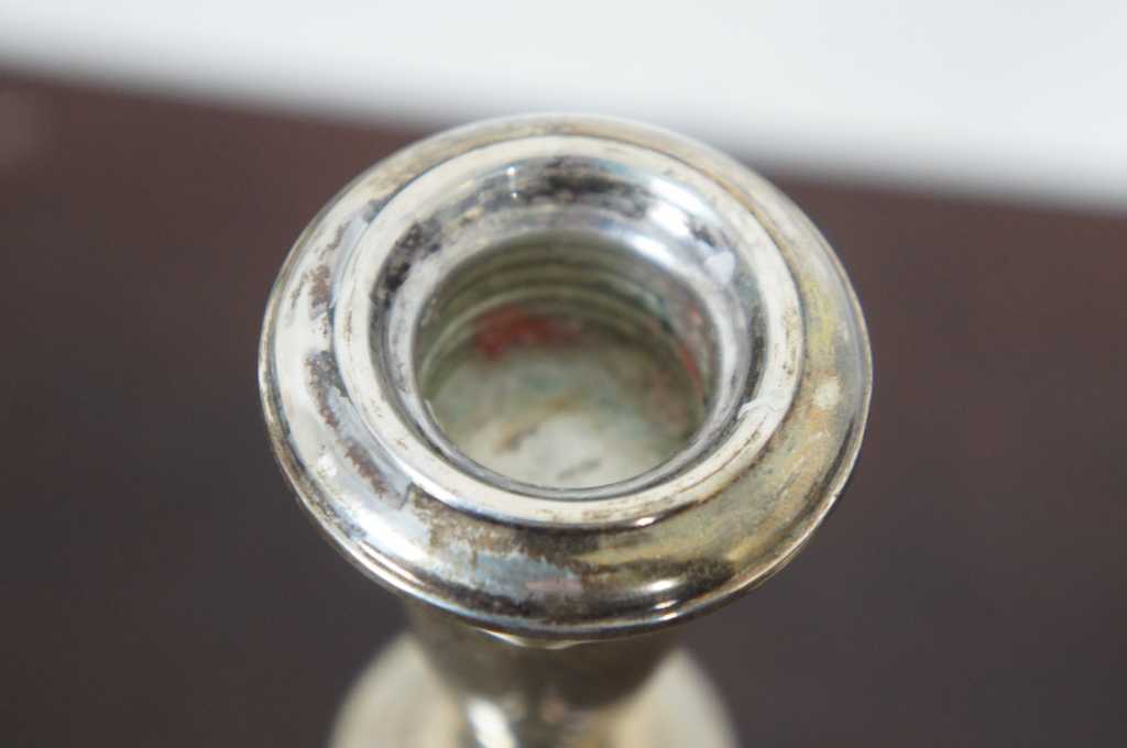 Gorgeous antique pair of sterling silver candlesticks. Feature art deco styling, marked SSS on base.