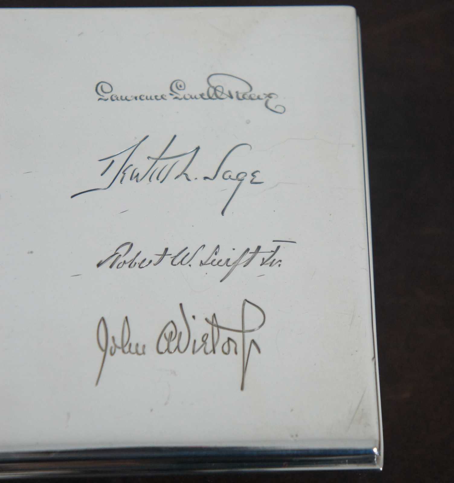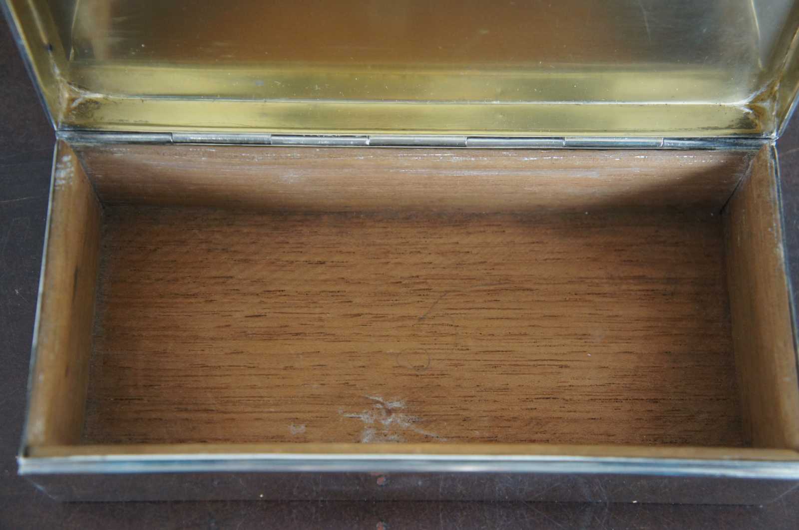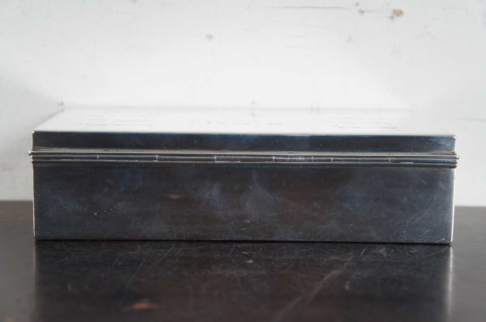 Antique sterling desk box by Tiffany. Described as a smart and modern sterling silver desk box. Made by Tiffany & Co. in New York, ca 1936. Rectangular with straight sides and sharp corners. Cover hinged with molded rim. Box interior cedar lined. Hallmark includes pattern no. 22353. Art deco era. Marked Tiffany & Co 22353 Makers 7938 Sterling Silver 925-1000 M
