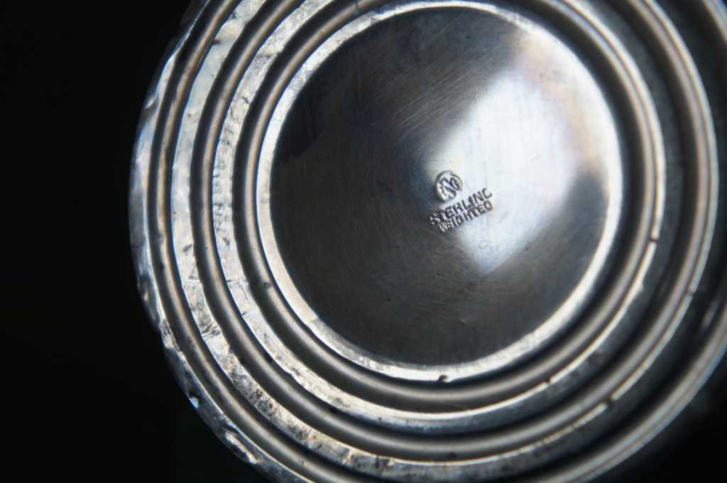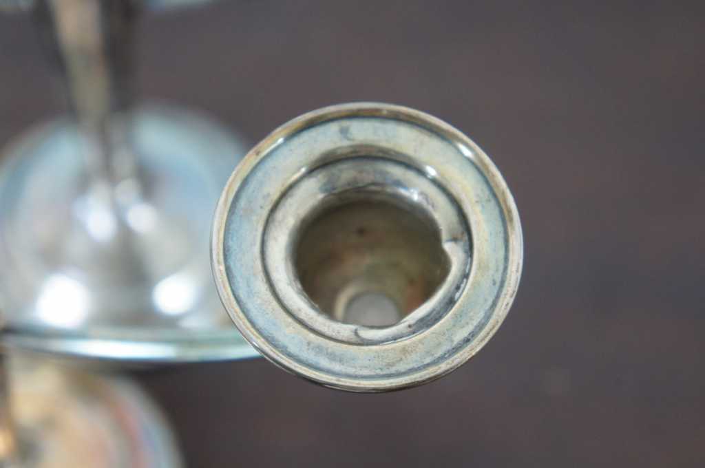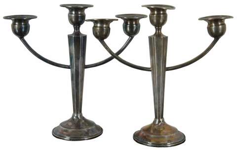 RS Co weighted sterling candelabras or candlesticks. Feature art deco styling and a nice patina.
