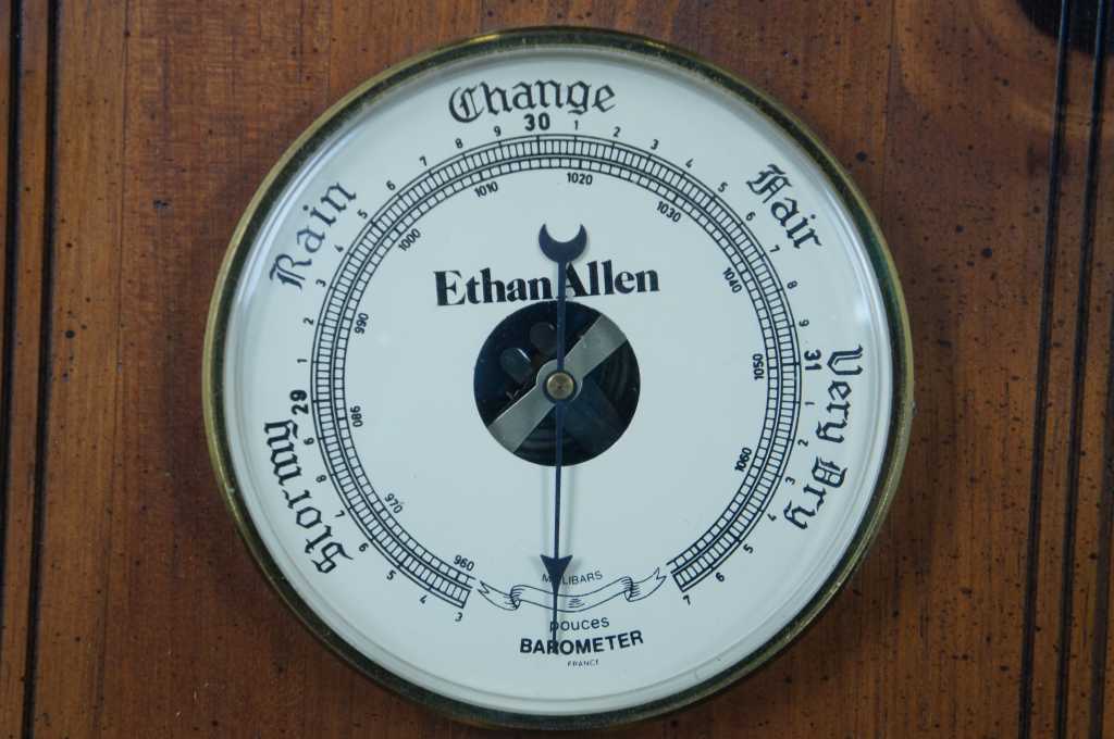 1980s Ethan Allen Barometer Hygrometer Thermometer, Early American Style. Made of Pine.