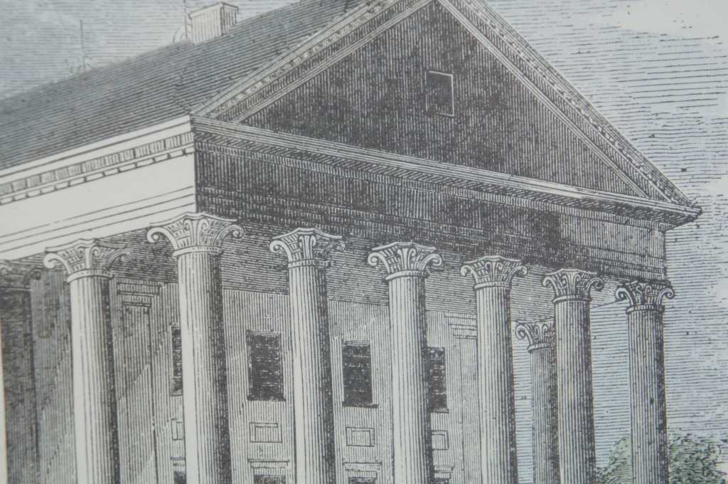 View of the Capitol" at Richmond Virgina portrays the early republic and palladian style architecture of the Virginia State capitol building. "Richmond, Virginia", originally produced in 1870. Features, the James River from Hollywood Virginia. Orig. engraved by Harry Fenn