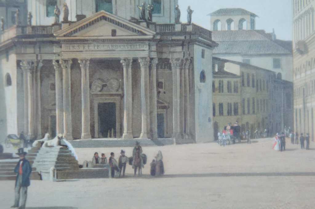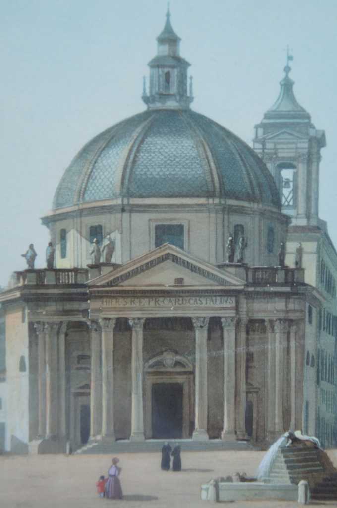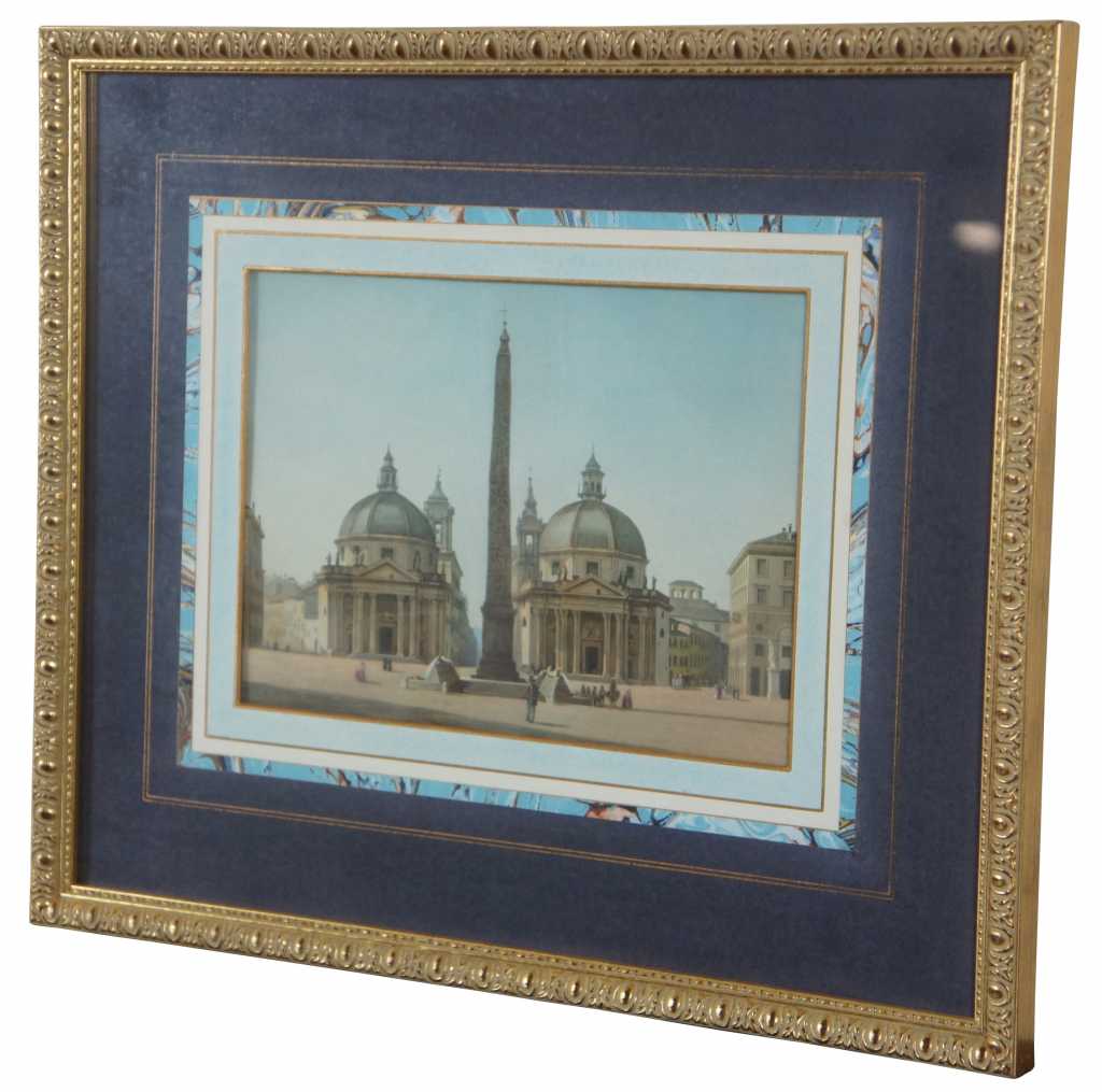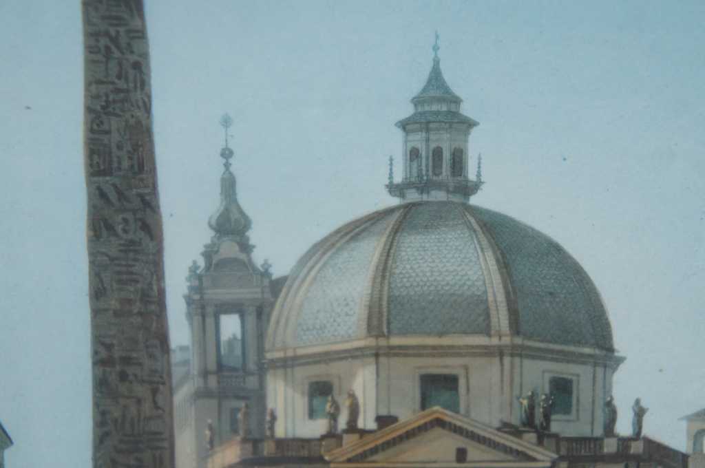 Piazza del Popolo Colored Engraving, features a beautiful cityscape of Piazza del Popolo, Rome Italy.