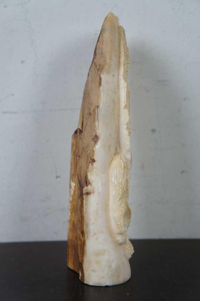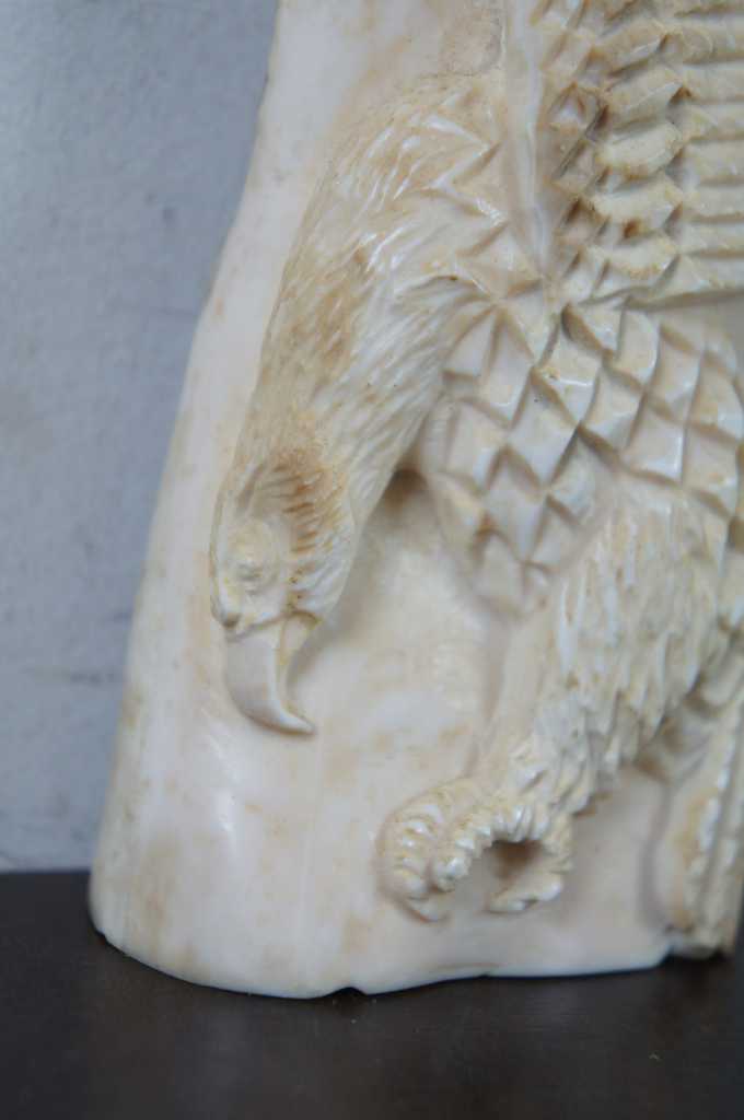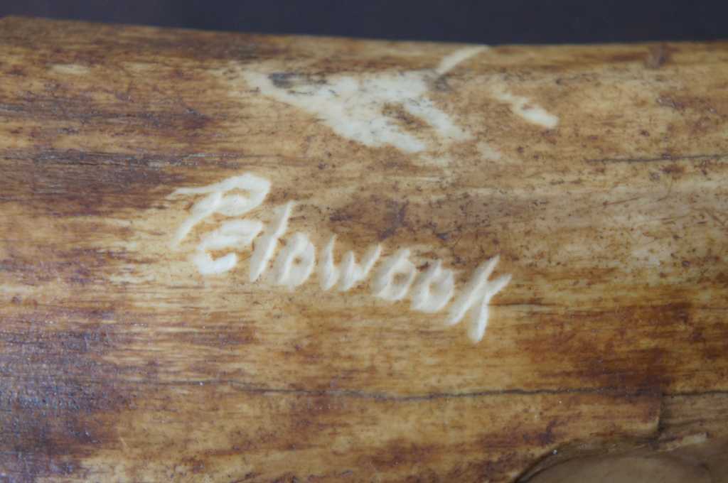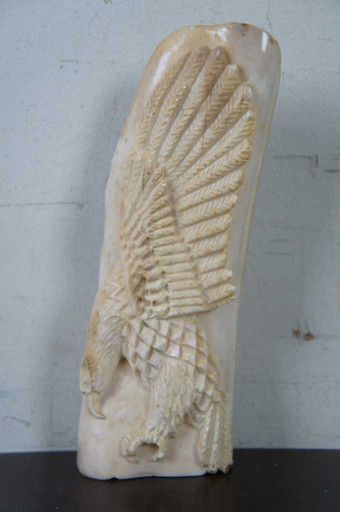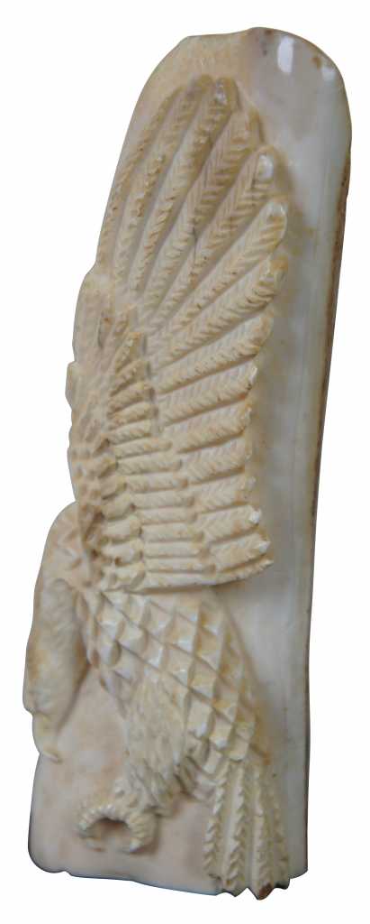Fossilized adz head that has been carved into an eagle. This artifact dates from approximately 1000 years ago from Saint Lawrence Island Alaska. The carving was done by a member of the Pelowook family from the village of Savoonga on Saint Lawrence Island. The Pelowooks are Siberian Yupik Eskimo and are well known for their carvings. The carving was done approximately thirty years ago. Copy of original purchase description included.