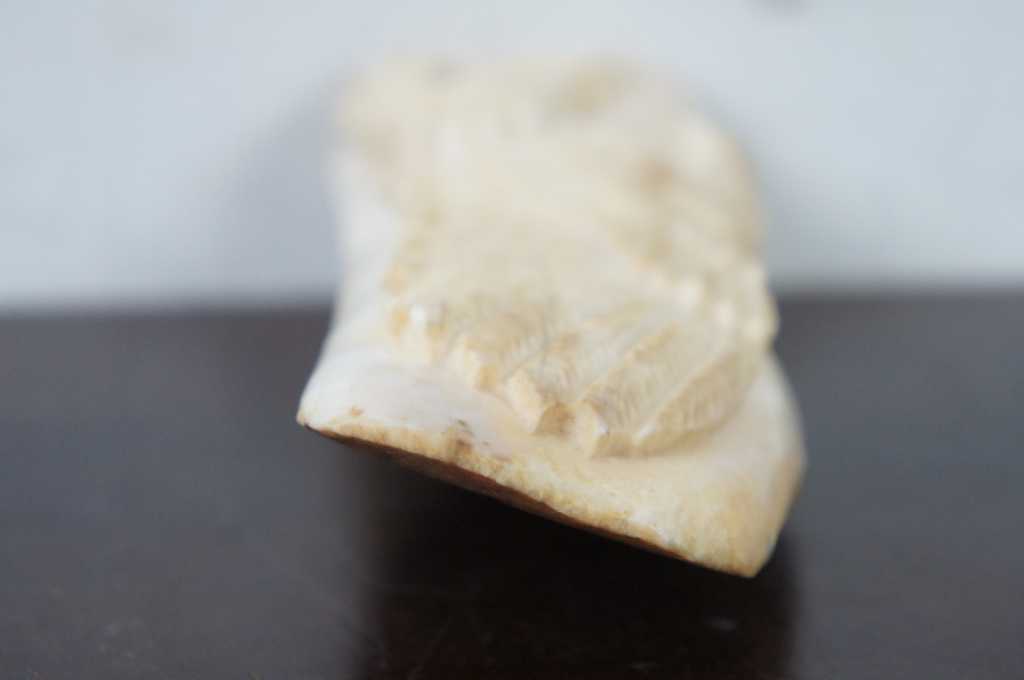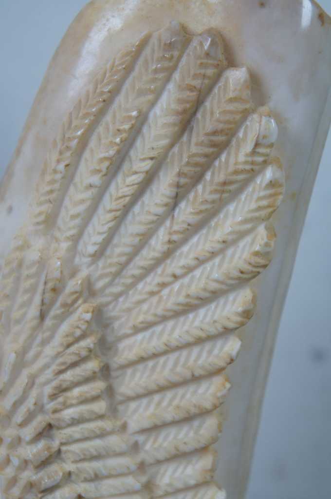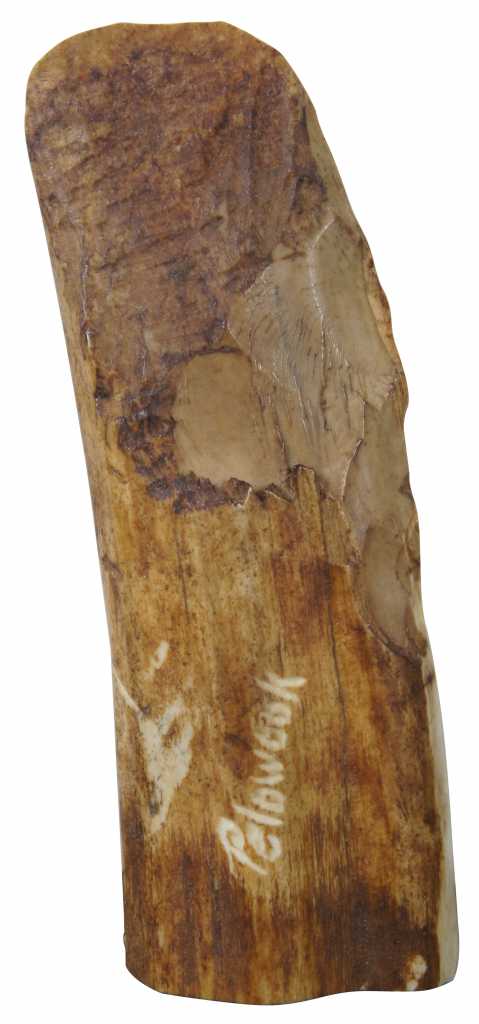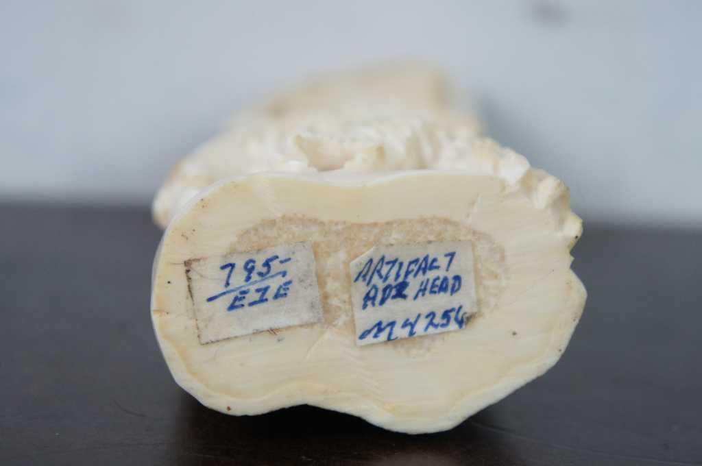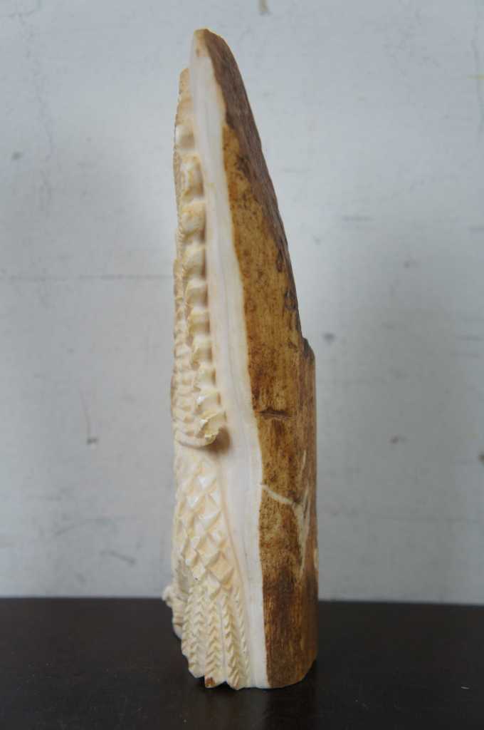 Fossilized adz head that has been carved into an eagle. This artifact dates from approximately 1000 years ago from Saint Lawrence Island Alaska. The carving was done by a member of the Pelowook family from the village of Savoonga on Saint Lawrence Island. The Pelowooks are Siberian Yupik Eskimo and are well known for their carvings. The carving was done approximately thirty years ago. Copy of original purchase description included.
