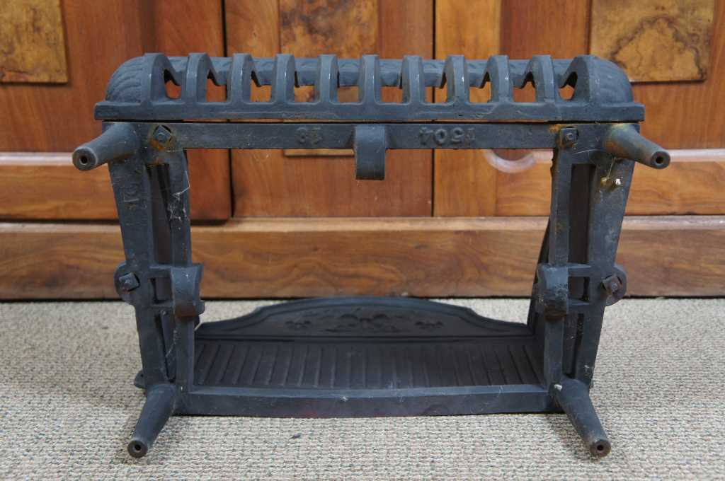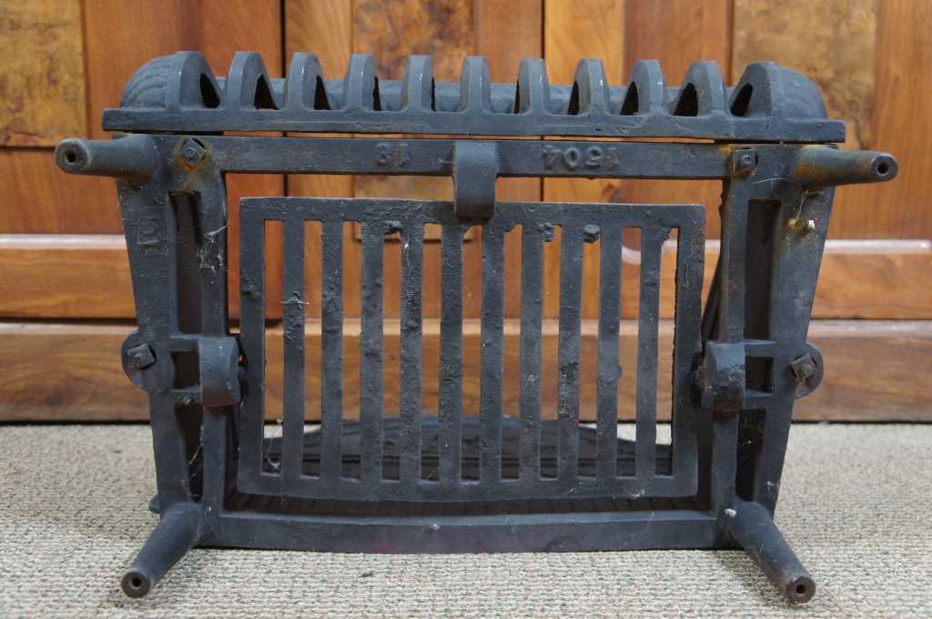 Antique cast iron fire basket, marked 1504 - 20 and 62 , R on side.