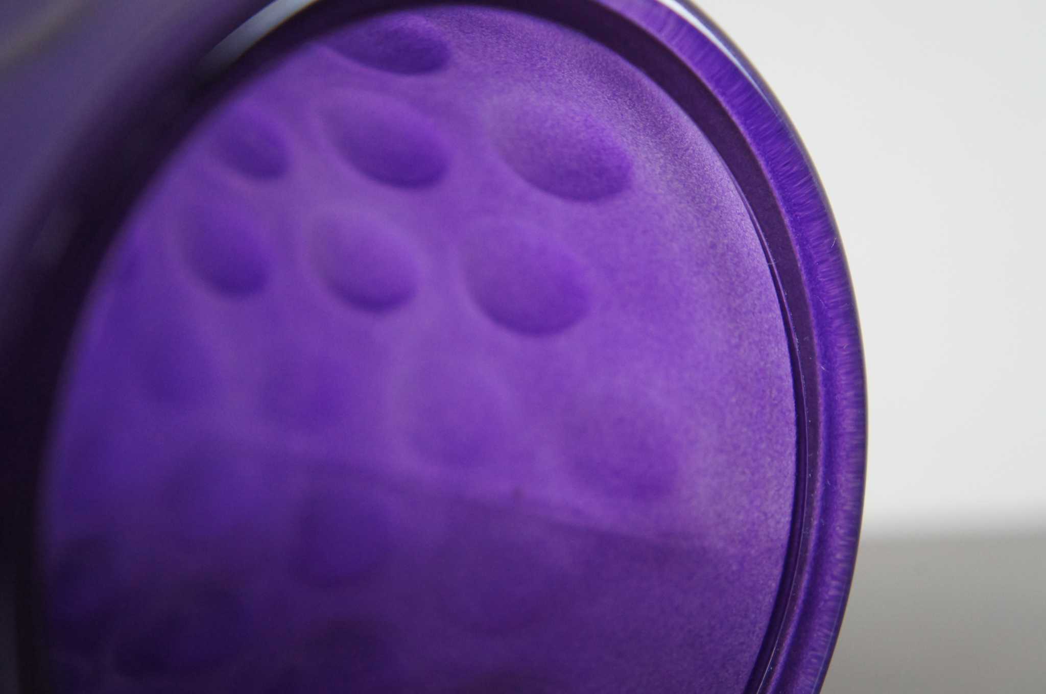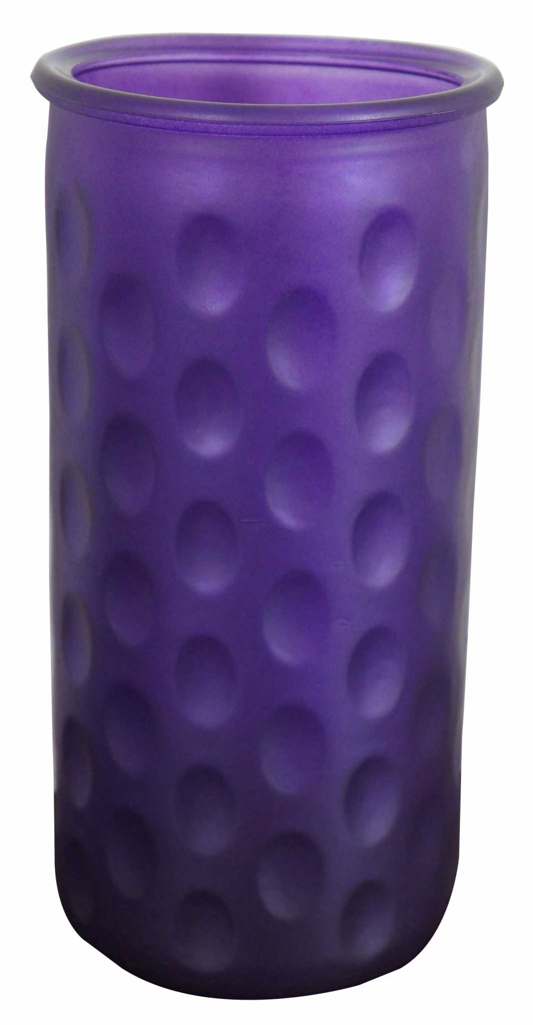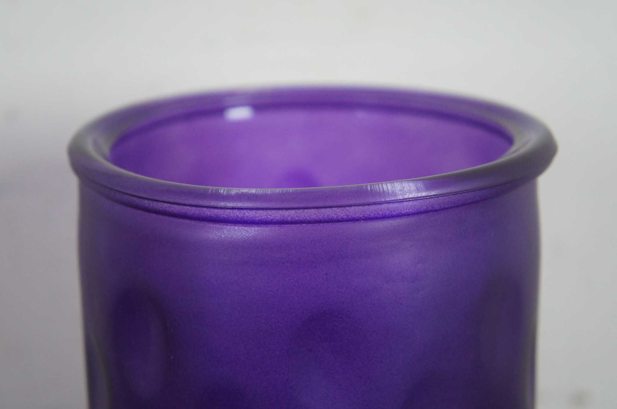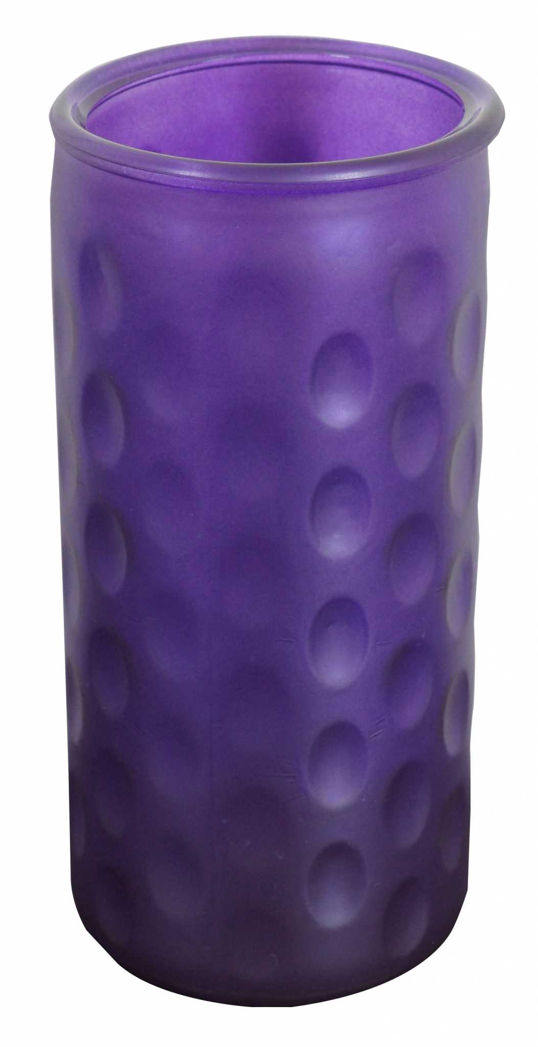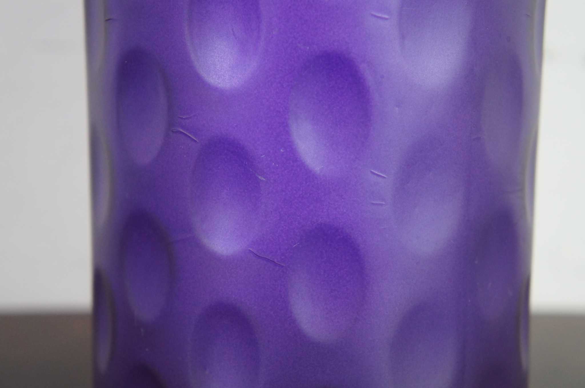 Mid Century Modern Purple Art Glass Cylinder Vase Bohemian Dotted Dimple 10