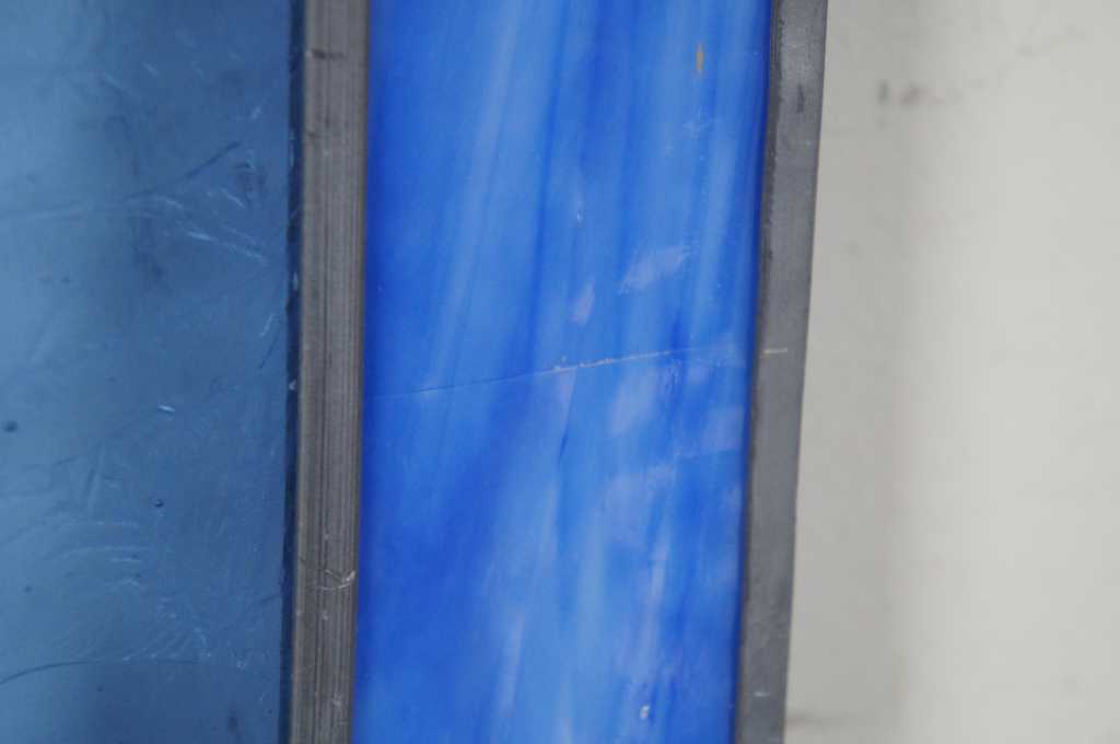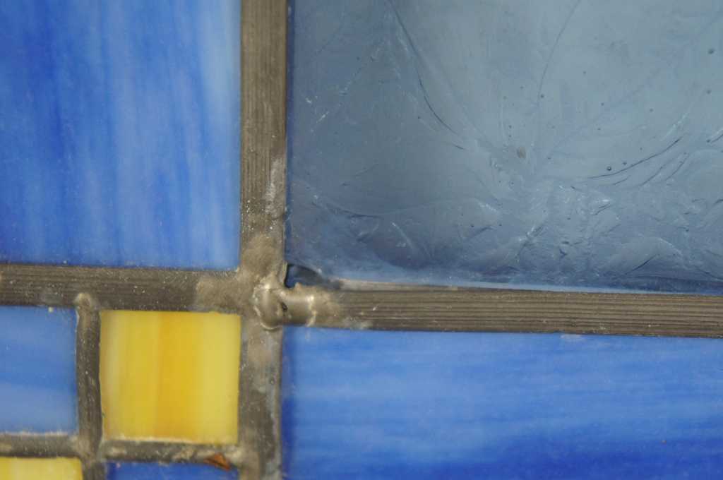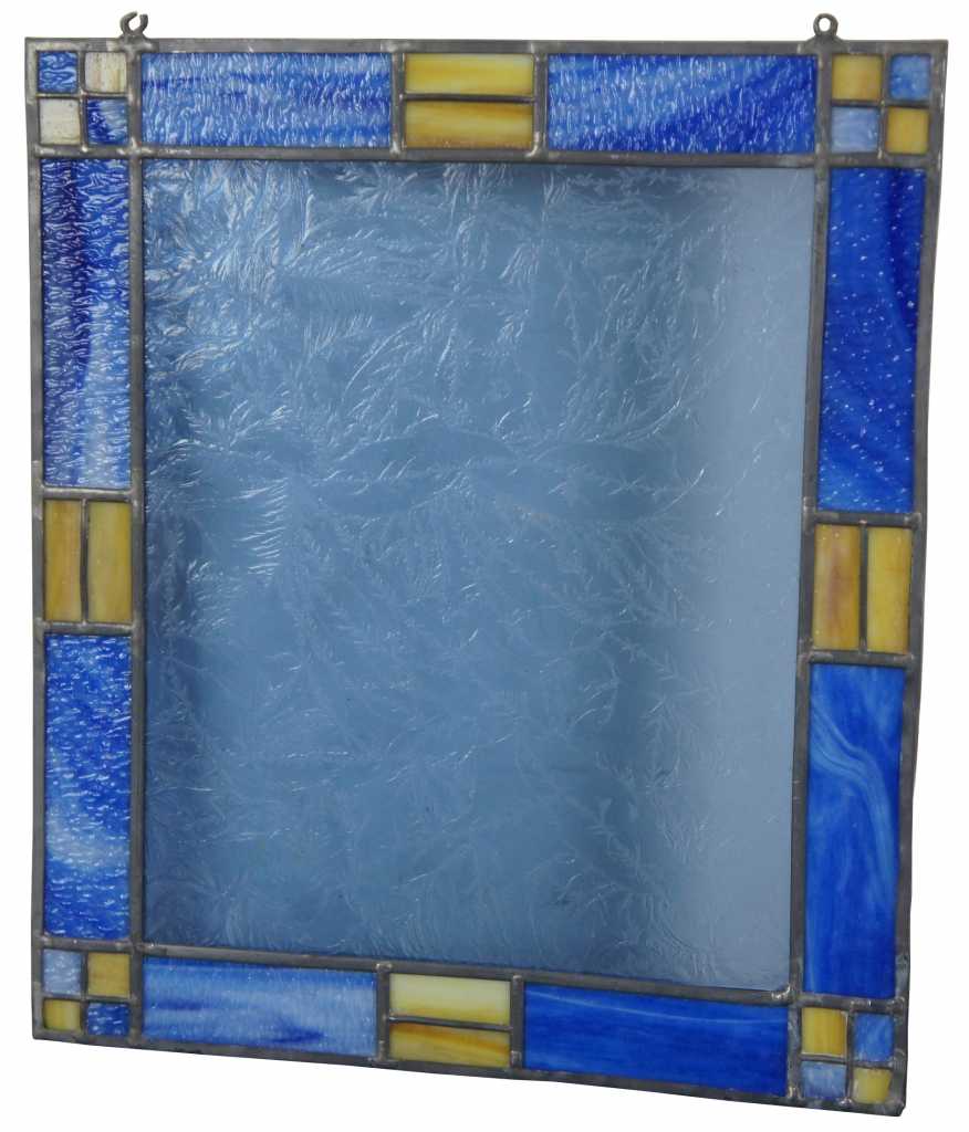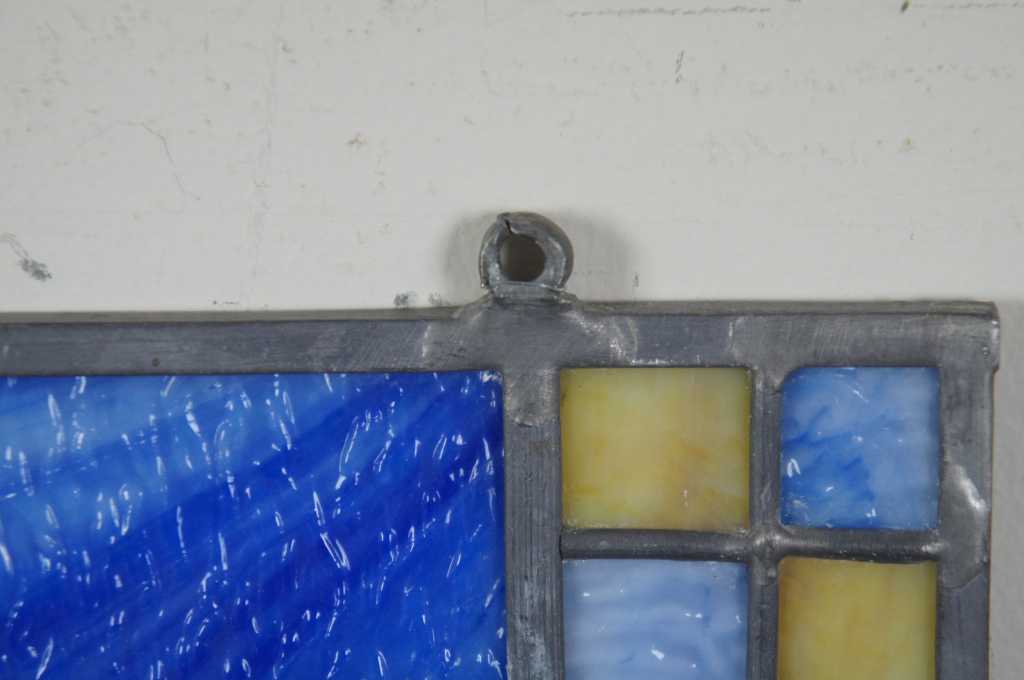 Blue and yellow leaded stained glass window panel.