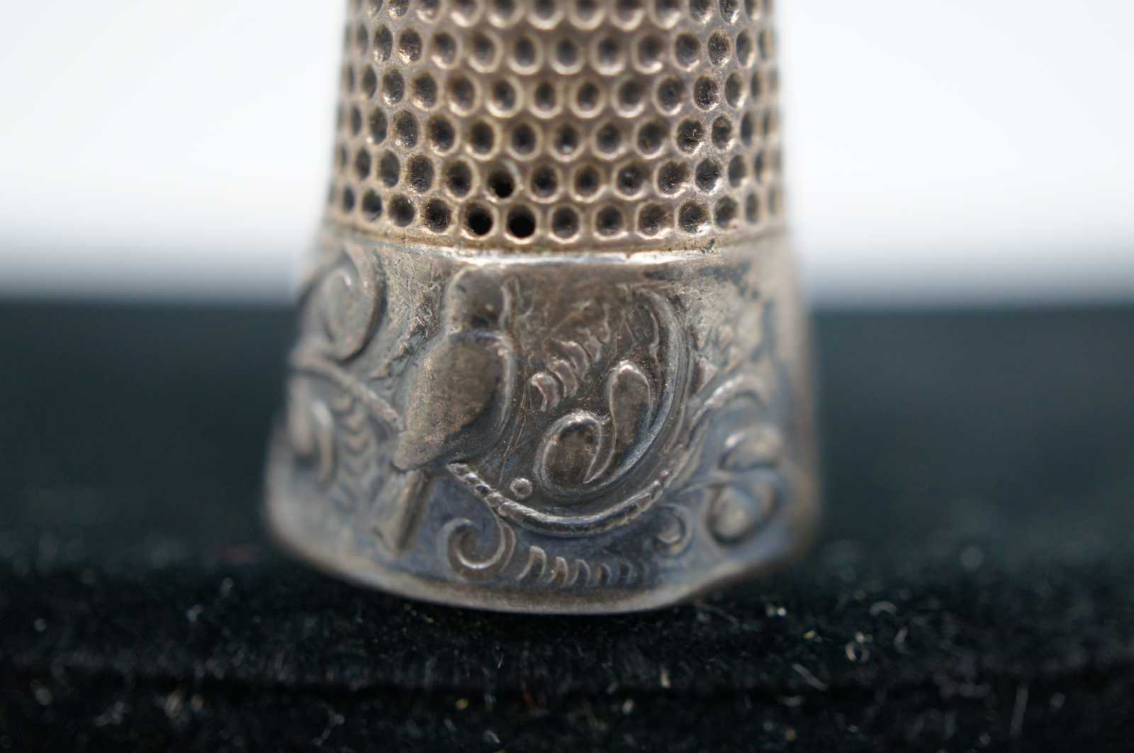 Antique Sterling Silver .925 timble made by the Waite, Thresher Co in the late 19th century. Features a star and a thimble. Waite, Thresher Co was founded in Providence, Rhode island, 1884 - 1928. Manufactureres of silver and gold thimbles. Originally founded by Daniel Waite in 1860 as DW Waite & Co. Henry Thresher became a partner in 1884. Simons Brothers acquired their deisngs when the firm disolved. First mark was a star, the thimble in its interior was added later. Successor to the Waite, Smith & Co.