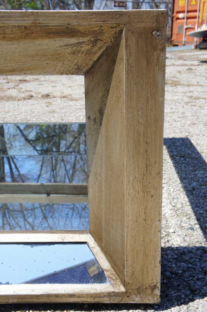 Inspired by the famous hall of mirrors found in the opulent French palace, the Pascual coffee table makes a striking centerpiece in a sitting room or study and is the perfect platform for displaying treasured objects. The wood frame is hand distressed with a metallic champagne finish and inset with antiqued mirrors. The distinctive finishes work well with gold or silver.