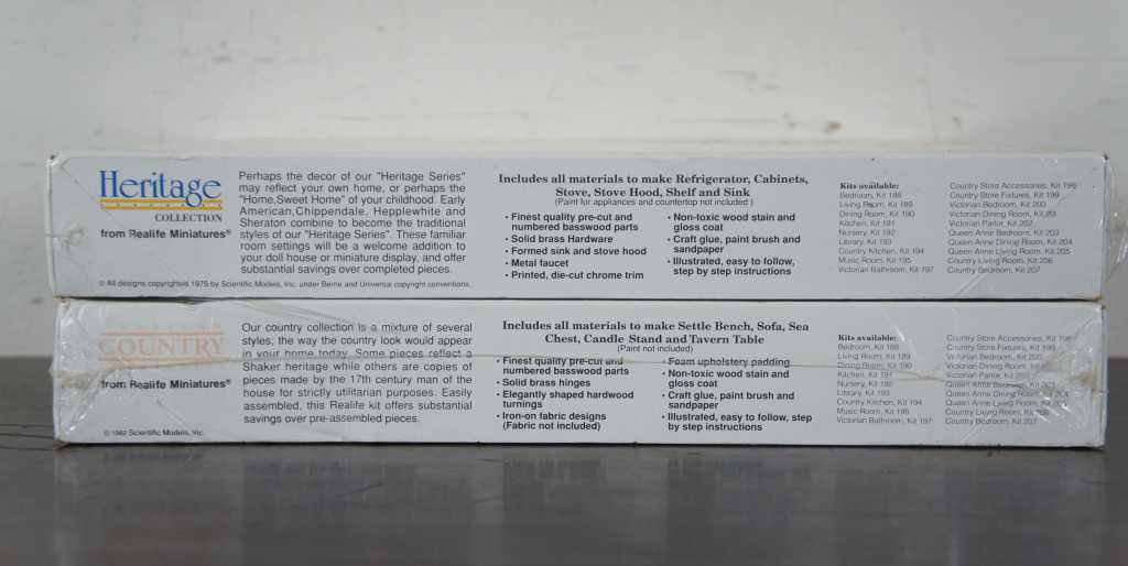2 Dollhouse Furniture Kits. Heritage kitchen collection and American Country living room collection., kits 191 & 206.